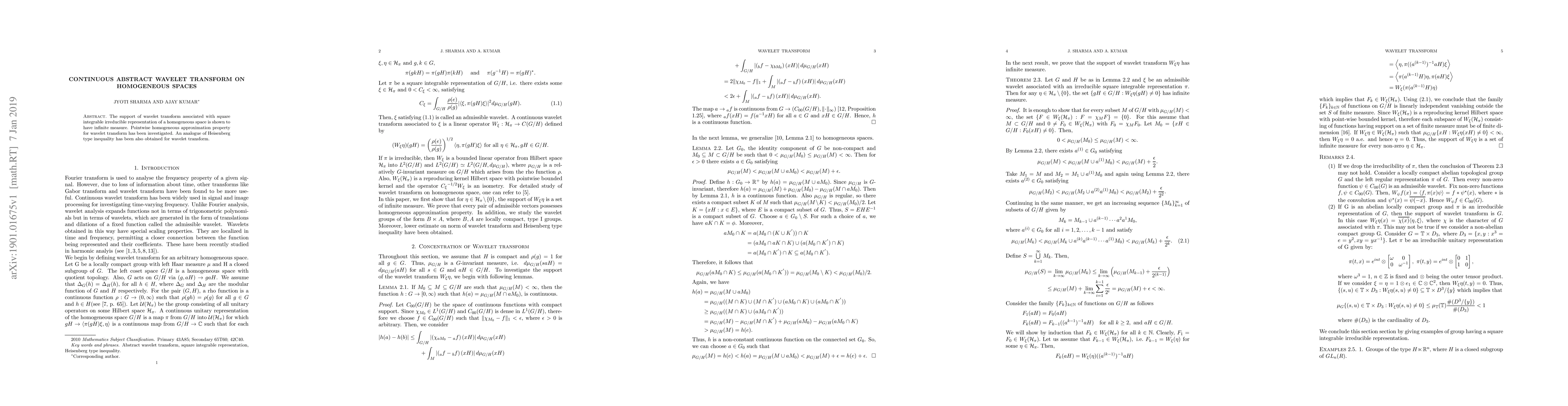 This paper demonstrates that the wavelet transform associated with square integrable irreducible representations of a homogeneous space has infinite measure support. It also investigates the pointwise homogeneous approximation property and establishes an analogue of the Heisenberg inequality for this wavelet transform.