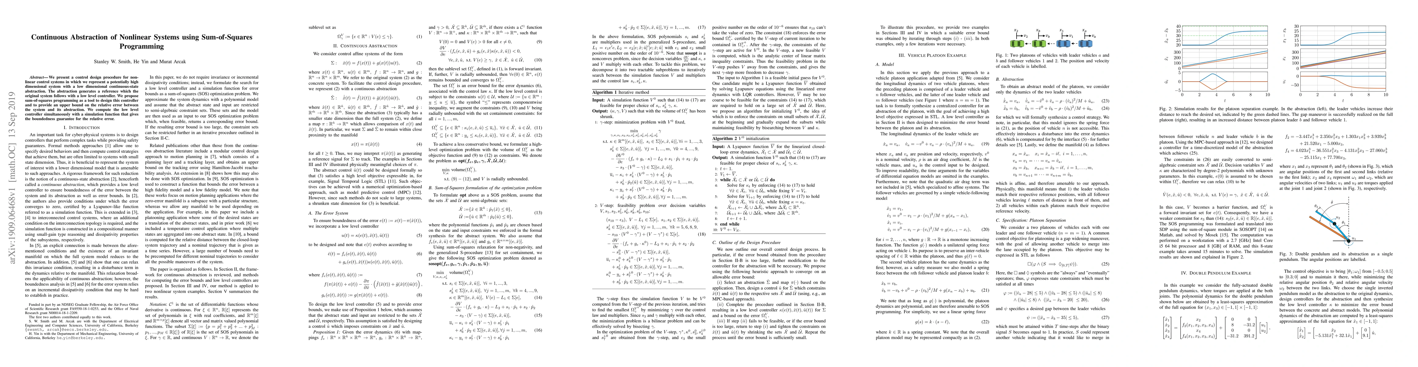 This paper proposes a method for designing controllers for nonlinear systems using continuous abstraction and sum-of-squares programming, ensuring an upper bound on the relative error between the system and its abstraction while computing a low-level controller simultaneously.