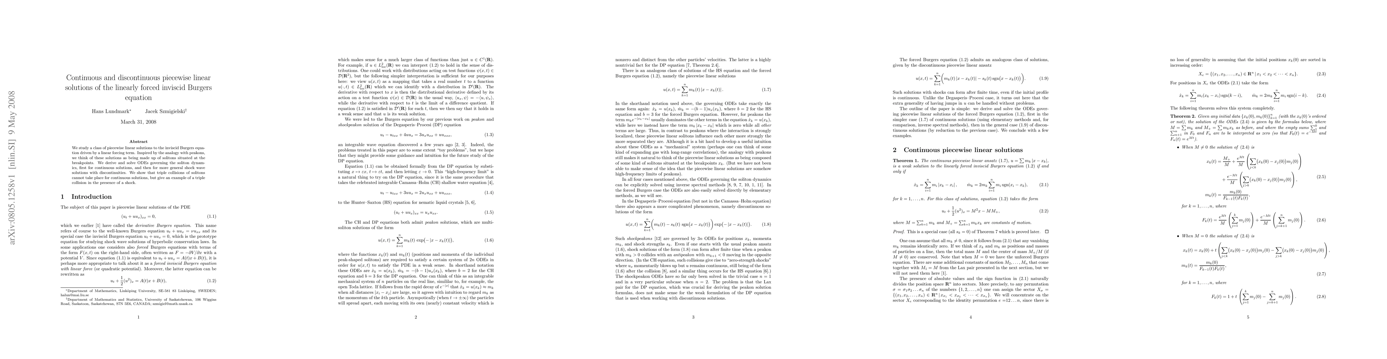 This paper studies piecewise linear solutions to the inviscid Burgers equation, which can form solitons at breakpoints that interact with each other in various ways, including triple collisions, some of which occur without shocks.