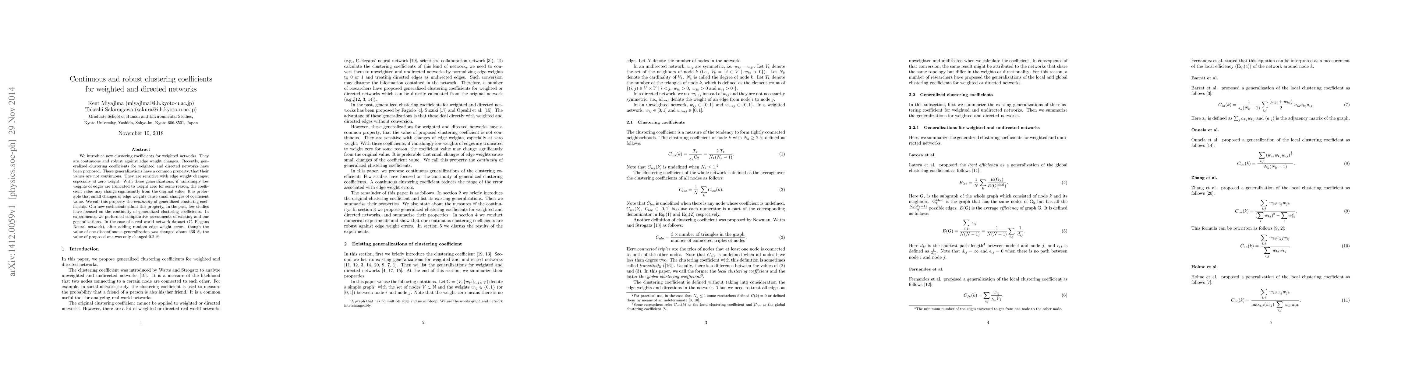 The paper presents a novel formulation of clustering coefficients for weighted and directed networks that ensures continuity, a property not shared by existing generalizations.