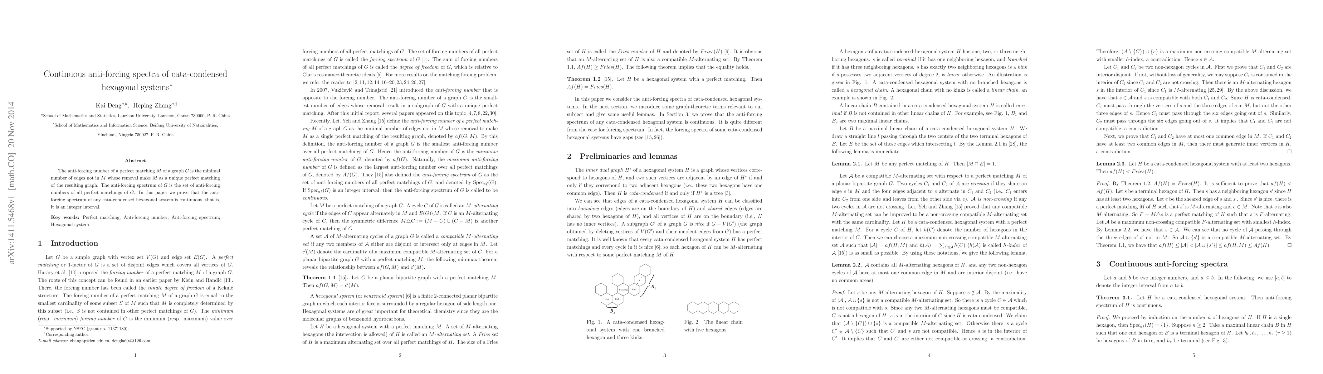 This paper proves that the anti-forcing spectrum of any cata-condensed hexagonal system is continuous, meaning it forms an integer interval. The anti-forcing number measures the minimal edges needed to uniquely determine a perfect matching in a graph.
