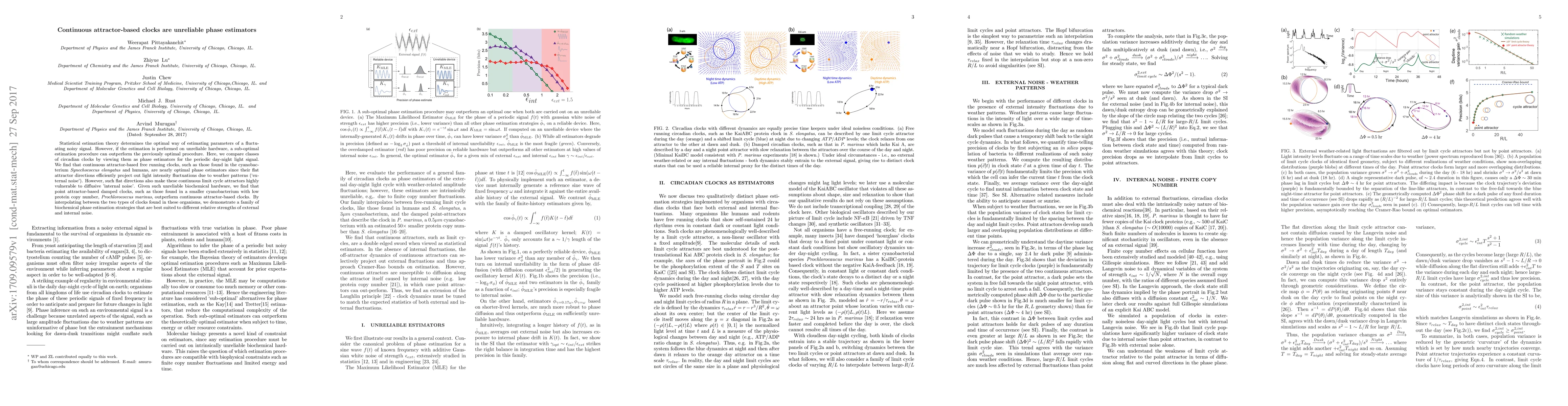 Statistical estimation theory determines the optimal way of estimating parameters of a fluctuating noisy signal. However, if the estimation is performed on unreliable hardware, a sub-optimal estimation procedure can outperform the previously optimal procedure. Here, we compare classes of circadian clocks by viewing them as phase estimators for the periodic day-night light signal. We find that continuous attractor-based free running clocks, such as those found in the cyanobacterium Synechococcus elongatus and humans, are nearly optimal phase estimators since their flat attractor directions efficiently project out light intensity fluctuations due to weather patterns (`external noise'). However, such flat directions also make these continuous limit cycle attractors highly vulnerable to diffusive 'internal noise'. Given such unreliable biochemical hardware, we find that point attractor-based damped clocks, such as those found in a smaller cyanobacterium with low protein copy number, Prochlorococcus marinus, outperform continuous attractor-based clocks. By interpolating between the two types of clocks found in these organisms, we demonstrate a family of biochemical phase estimation strategies that are best suited to different relative strengths of external and internal noise.