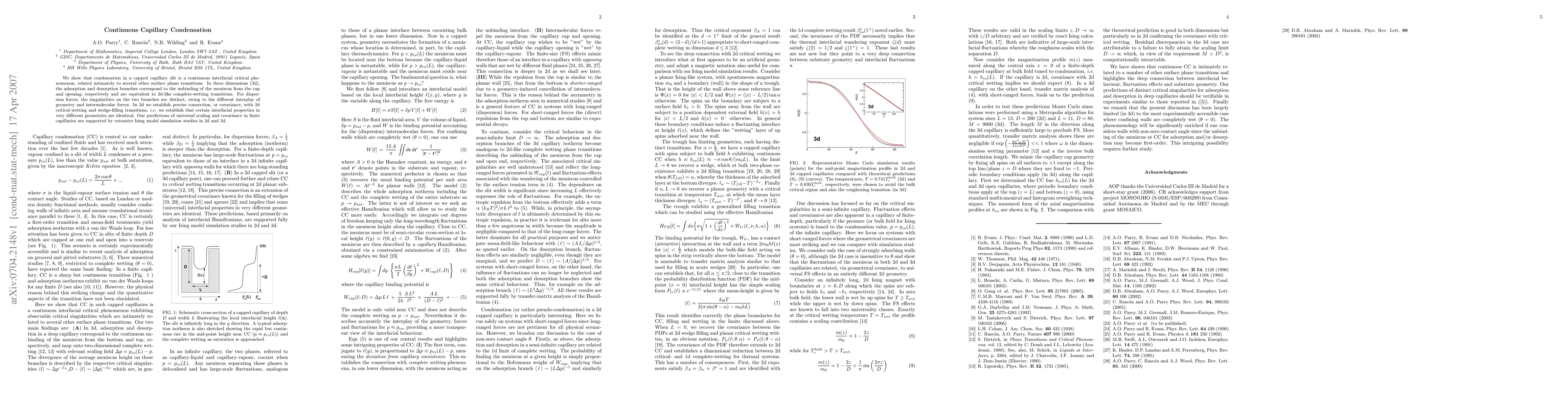 This paper demonstrates that capillary condensation in a capped capillary slit is a continuous critical phenomenon linked to various surface phase transitions. The study establishes precise connections between interfacial properties in different geometries, supported by Ising model simulations, revealing universal scaling and covariance in finite capillaries.