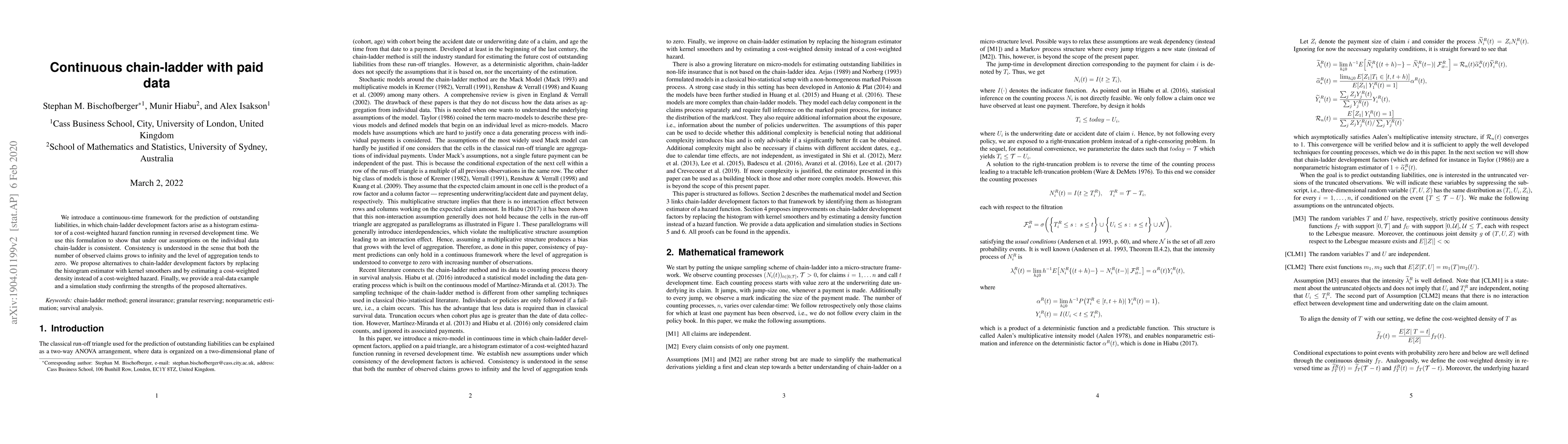 We introduce a continuous-time framework for the prediction of outstanding liabilities, in which chain-ladder development factors arise as a histogram estimator of a cost-weighted hazard function running in reversed development time. We use this formulation to show that under our assumptions on the individual data chain-ladder is consistent. Consistency is understood in the sense that both the number of observed claims grows to infinity and the level of aggregation tends to zero. We propose alternatives to chain-ladder development factors by replacing the histogram estimator with kernel smoothers and by estimating a cost-weighted density instead of a cost-weighted hazard. Finally, we provide a real-data example and a simulation study confirming the strengths of the proposed alternatives.