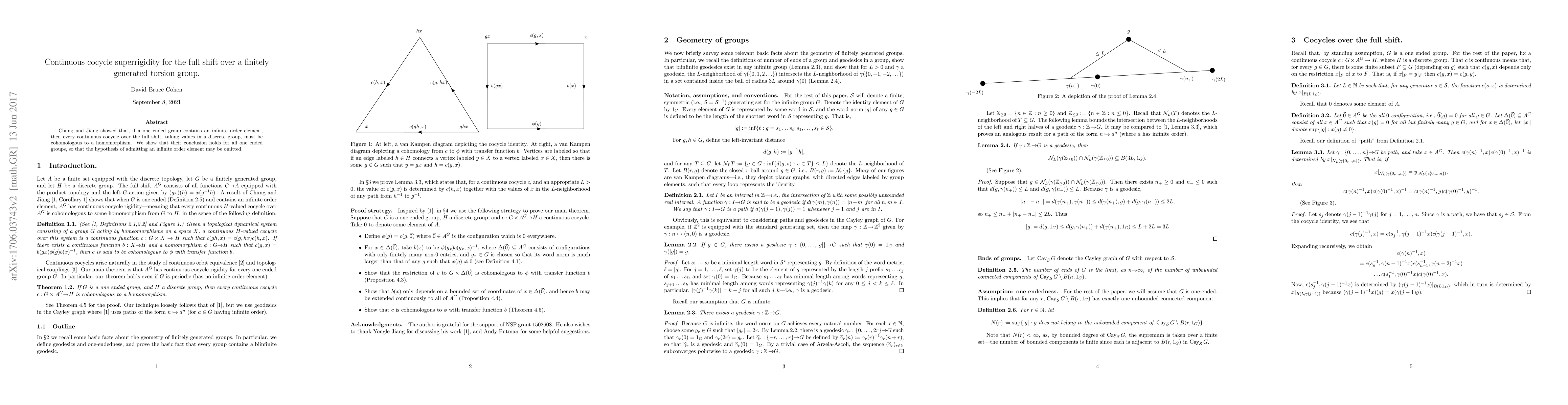 Chung and Jiang showed that, if a one ended group contains an infinite order element, then every continuous cocycle over the full shift on that group, taking values in a discrete group, must be cohomologous to a homomorphism. We show that their conclusion holds for all one ended groups, so that the hypothesis of admitting an infinite order element may be omitted.