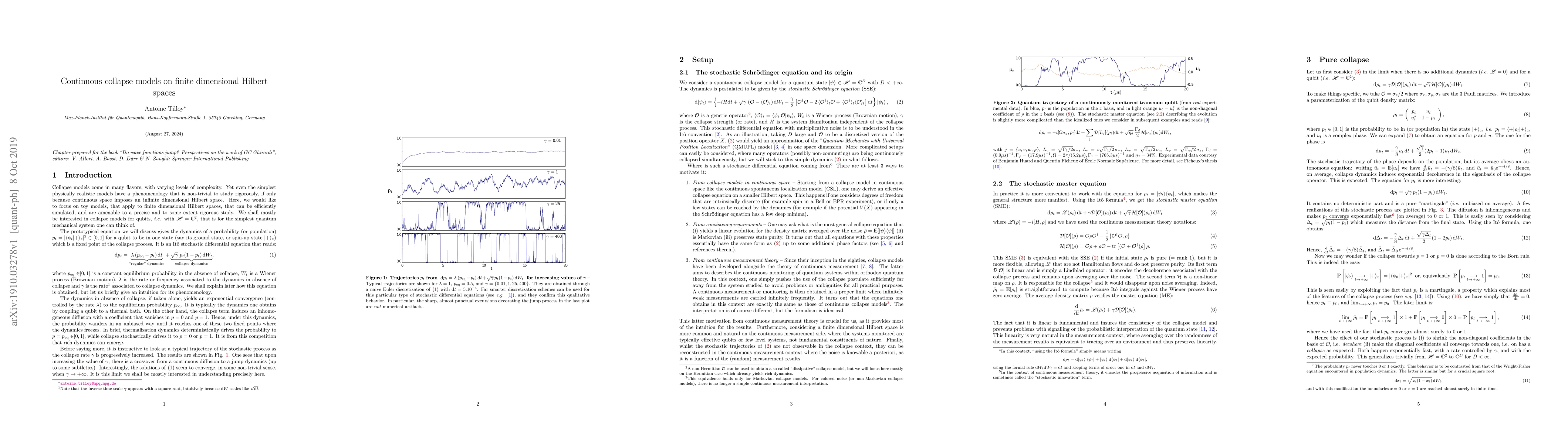 Researchers studied continuous collapse models on finite dimensional Hilbert spaces, finding that collapse dynamics can lead to quantum jumps and unexpected spikes in the quantum system.