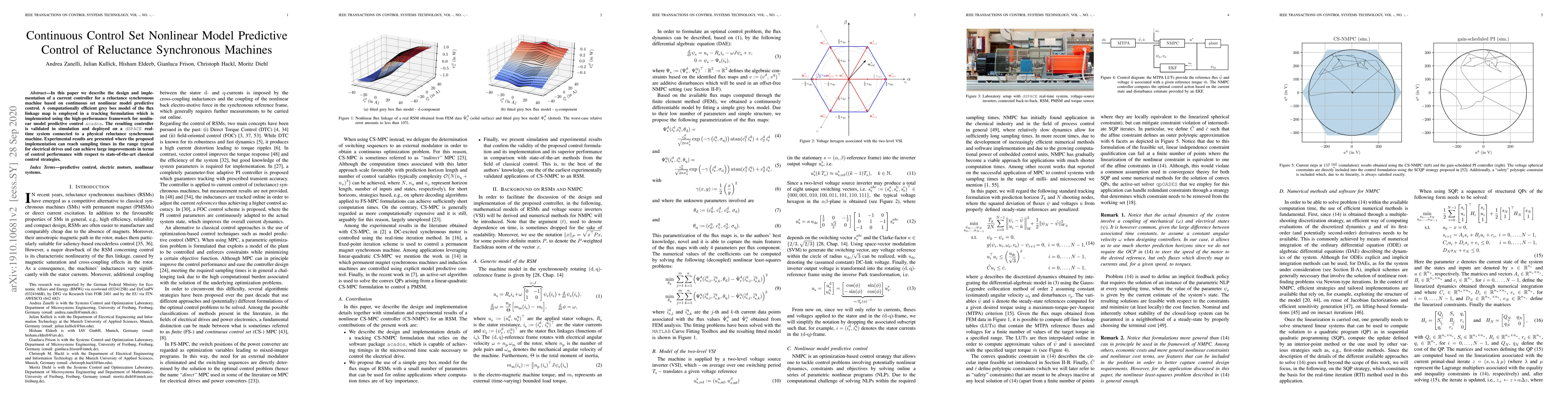 In this paper we describe the design and implementation of a current controller for a reluctance synchronous machine based on continuous set nonlinear model predictive control. A computationally efficient grey box model of the flux linkage map is employed in a tracking formulation which is implemented using the high-performance framework for nonlinear model predictive control acados. The resulting controller is validated in simulation and deployed on a dSPACE real-time system connected to a physical reluctance synchronous machine. Experimental results are presented where the proposed implementation can reach sampling times in the range typical for electrical drives and can achieve large improvements in terms of control performance with respect to state-of-the-art classical control strategies.