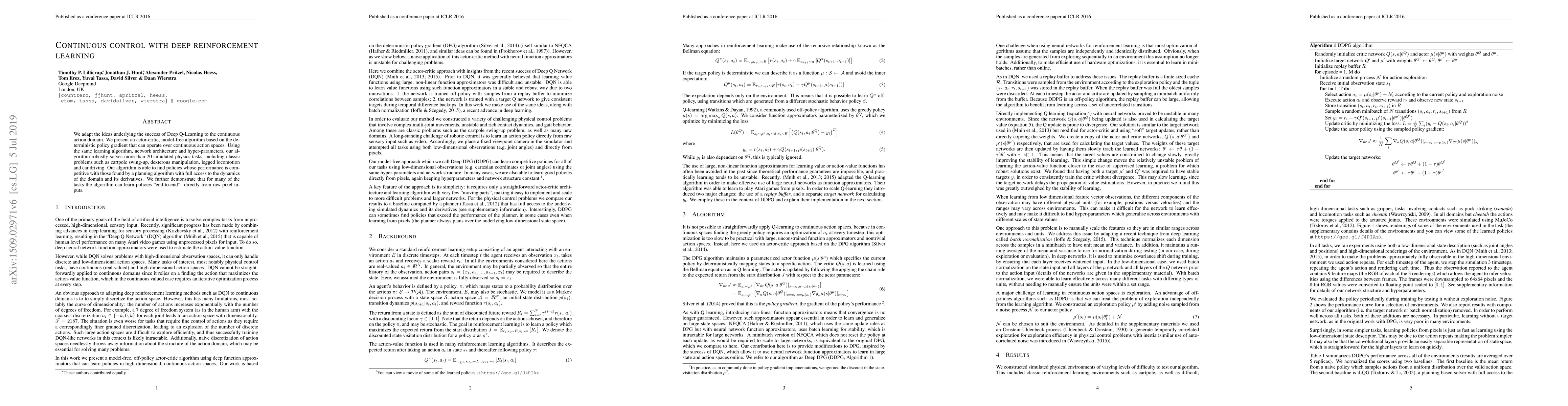 This paper introduces a continuous reinforcement learning algorithm based on actor-critic and deterministic policy gradient, successfully solving over 20 simulated physics tasks, demonstrating competitive performance against planning algorithms and the ability to learn directly from raw pixel inputs.