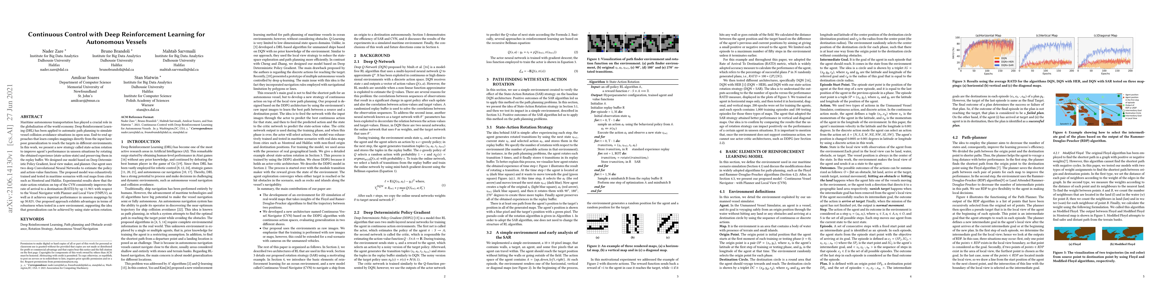 Maritime autonomous transportation has played a crucial role in the globalization of the world economy. Deep Reinforcement Learning (DRL) has been applied to automatic path planning to simulate vessel collision avoidance situations in open seas. End-to-end approaches that learn complex mappings directly from the input have poor generalization to reach the targets in different environments. In this work, we present a new strategy called state-action rotation to improve agent's performance in unseen situations by rotating the obtained experience (state-action-state) and preserving them in the replay buffer. We designed our model based on Deep Deterministic Policy Gradient, local view maker, and planner. Our agent uses two deep Convolutional Neural Networks to estimate the policy and action-value functions. The proposed model was exhaustively trained and tested in maritime scenarios with real maps from cities such as Montreal and Halifax. Experimental results show that the state-action rotation on top of the CVN consistently improves the rate of arrival to a destination (RATD) by up 11.96% with respect to the Vessel Navigator with Planner and Local View (VNPLV), as well as it achieves superior performance in unseen mappings by up 30.82%. Our proposed approach exhibits advantages in terms of robustness when tested in a new environment, supporting the idea that generalization can be achieved by using state-action rotation.