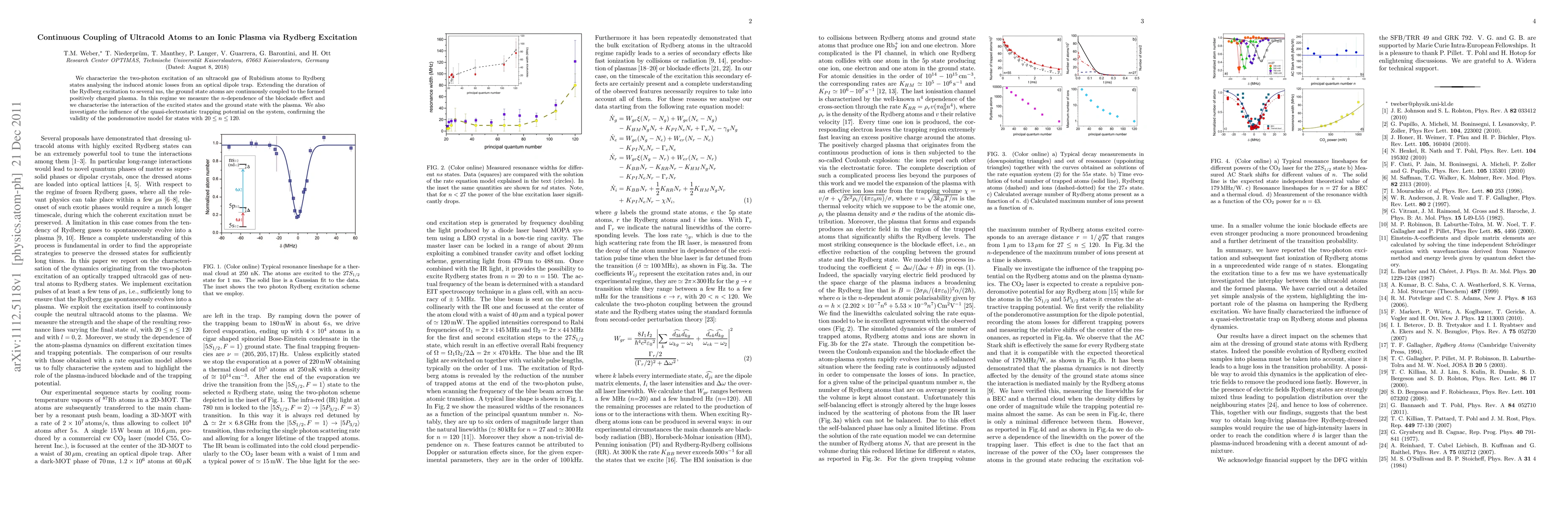 This paper investigates the continuous coupling of ultracold Rubidium atoms to an ionic plasma via Rydberg excitation, observing atomic losses from an optical dipole trap. The study measures the $n$-dependence of the blockade effect and characterizes the interaction between Rydberg and ground states with the plasma, validating the ponderomotive model for Rydberg states with principal quantum numbers between 20 and 120.