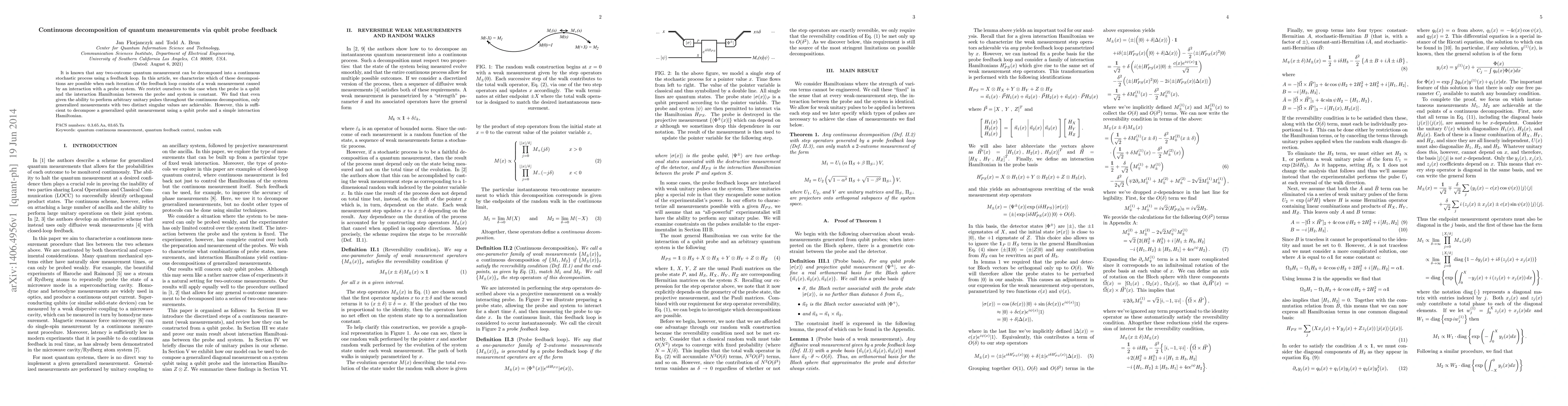 This paper explores the continuous decomposition of quantum measurements via a qubit probe in a feedback loop, revealing that only generalized measurements with two distinct singular values are achievable despite the flexibility of unitary pulses. It demonstrates the feasibility of decomposing generalized qubit measurements using such a probe and a constant interaction Hamiltonian.
