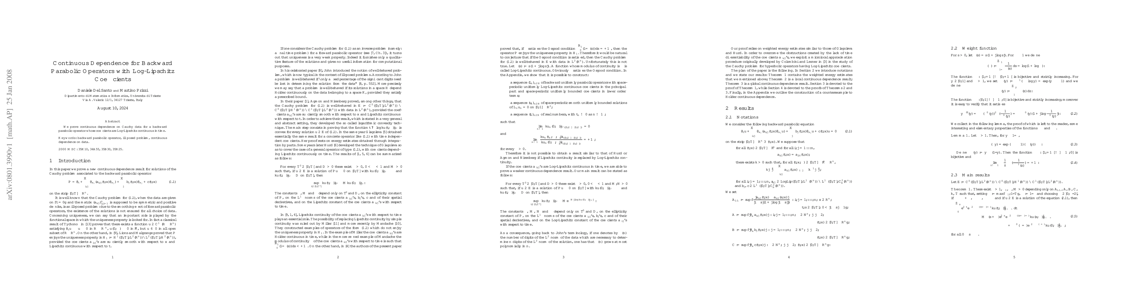 Summary: This paper establishes continuous dependence on initial data for a backward parabolic operator with Log-Lipschitz continuous coefficients in time, providing a rigorous mathematical foundation for the stability of such operators.