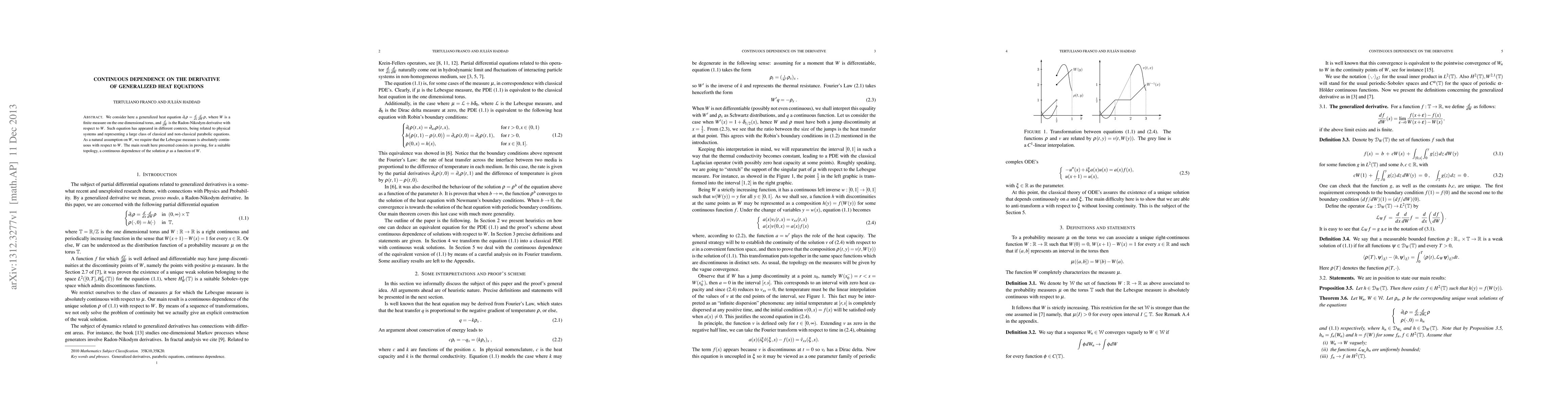This paper investigates a generalized heat equation involving a Radon-Nikodym derivative with respect to a finite measure on the one-dimensional torus. The main result demonstrates continuous dependence of the solution on the measure under the assumption that the Lebesgue measure is absolutely continuous with respect to it.