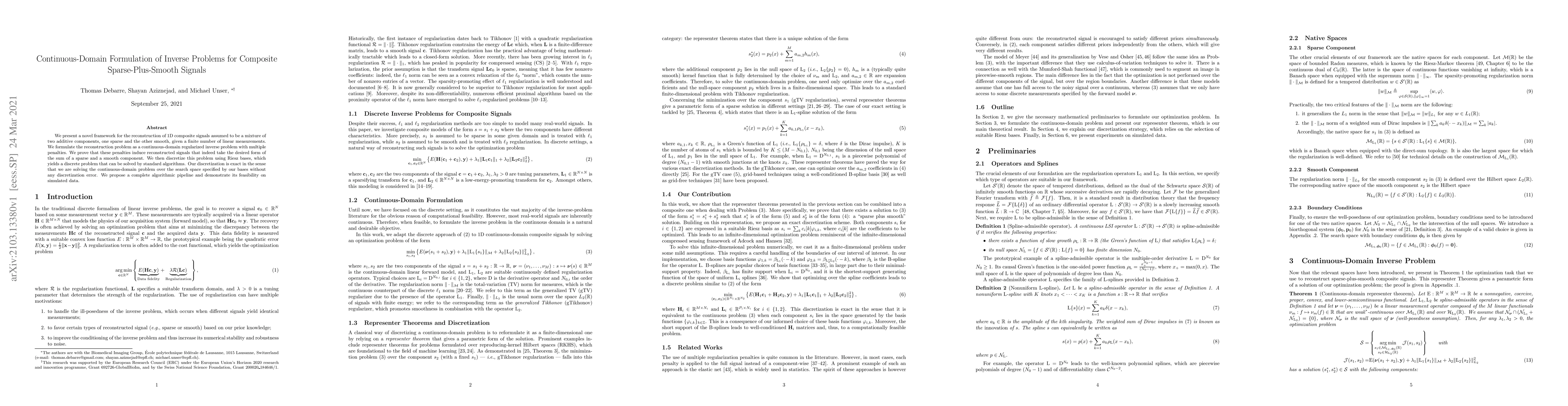 Researchers develop a new framework to reconstruct composite signals as a sum of sparse and smooth components from limited linear measurements, using continuous-domain regularization.