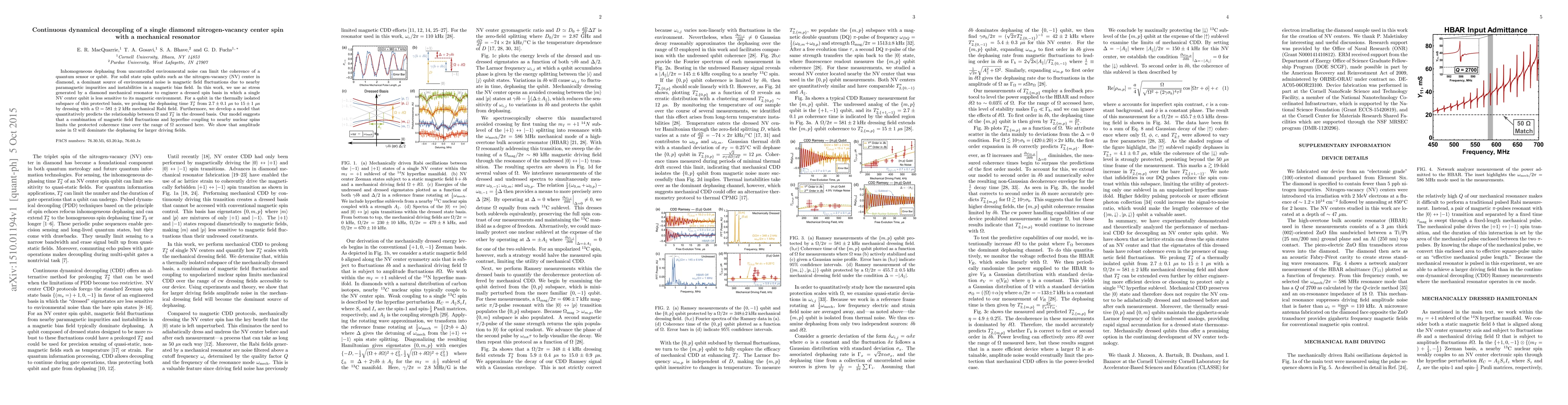 This paper demonstrates continuous dynamical decoupling of a nitrogen-vacancy center spin qubit in diamond using a mechanical resonator, significantly enhancing coherence by prolonging the dephasing time from $2.7\pm0.1$ $\mu$s to $15\pm1$ $\mu$s. The study also develops a predictive model for the relationship between the mechanical Rabi field and coherence time.
