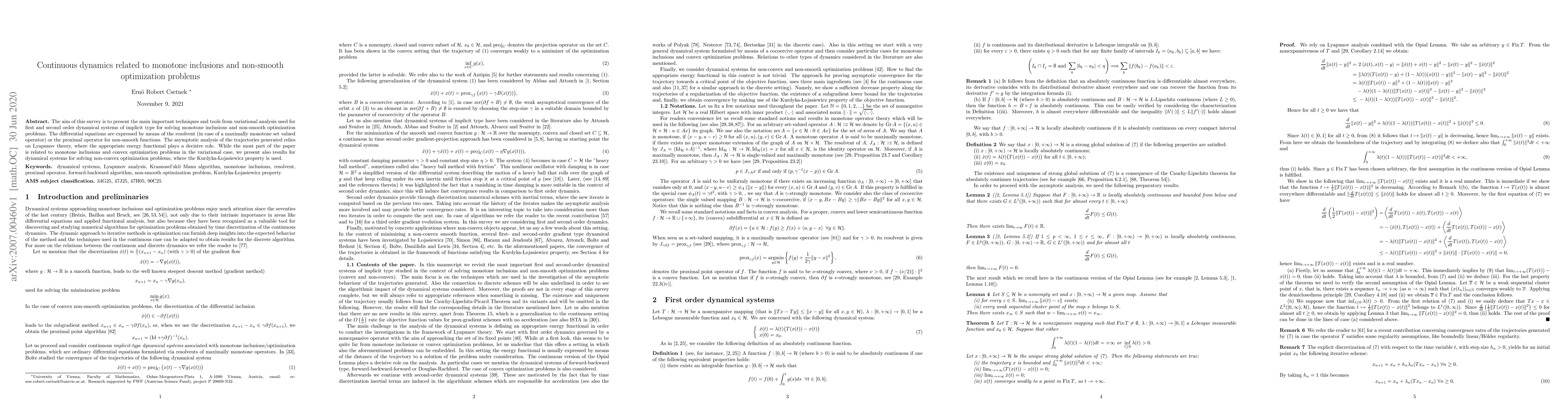 This paper surveys techniques and tools from variational analysis for solving monotone inclusions and non-smooth optimization problems using first and second order dynamical systems. It employs resolvent and proximal operators, and leverages Lyapunov theory for asymptotic analysis, focusing on both convex and non-convex optimization scenarios.
