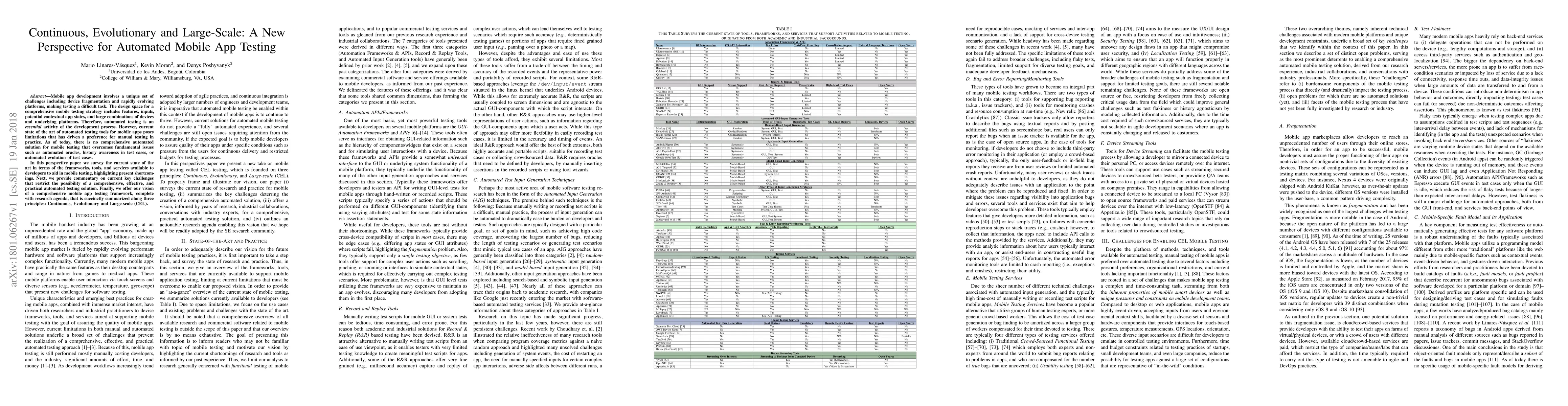 This paper surveys current automated mobile app testing tools, highlighting their limitations and key challenges, and proposes a new framework based on the principles of Continuous, Evolutionary, and Large-scale (CEL) testing to address the existing gaps.