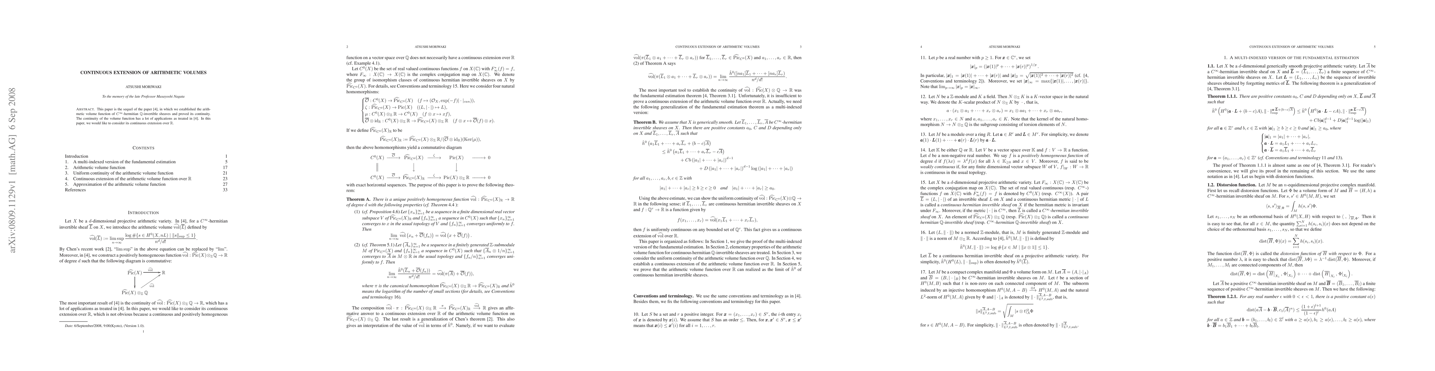 This paper is the sequel of the paper "Continuity of volumes on arithmetic varieties", in which we established the arithmetic volume function of smooth hermitian Q-invertible sheaves and proved its continuity. The continuity of the volume function has a lot of applications as treated in the paper as above. In this paper, we would like to consider its continuous extension over R.