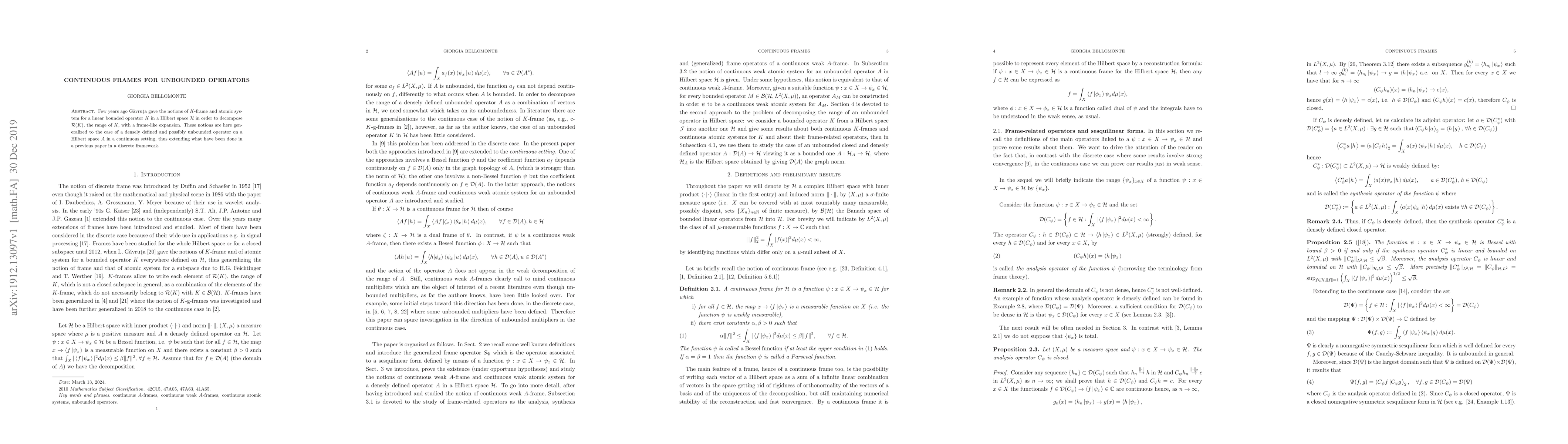 Researchers generalize notions of K-frame and atomic system to unbounded operators in a continuous setting, allowing for frame-like expansion of the range of densely defined operators.