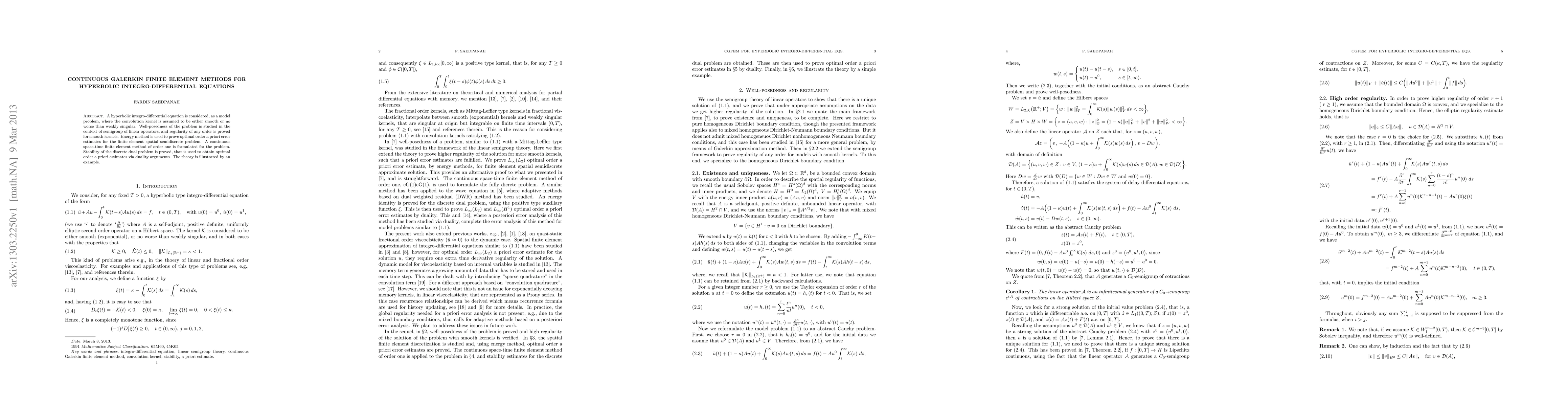 This paper investigates continuous Galerkin finite element methods for hyperbolic integro-differential equations, proving well-posedness and regularity for smooth kernels. Optimal a priori error estimates and stability are established for a space-time finite element method, with an example illustrating the theoretical results.