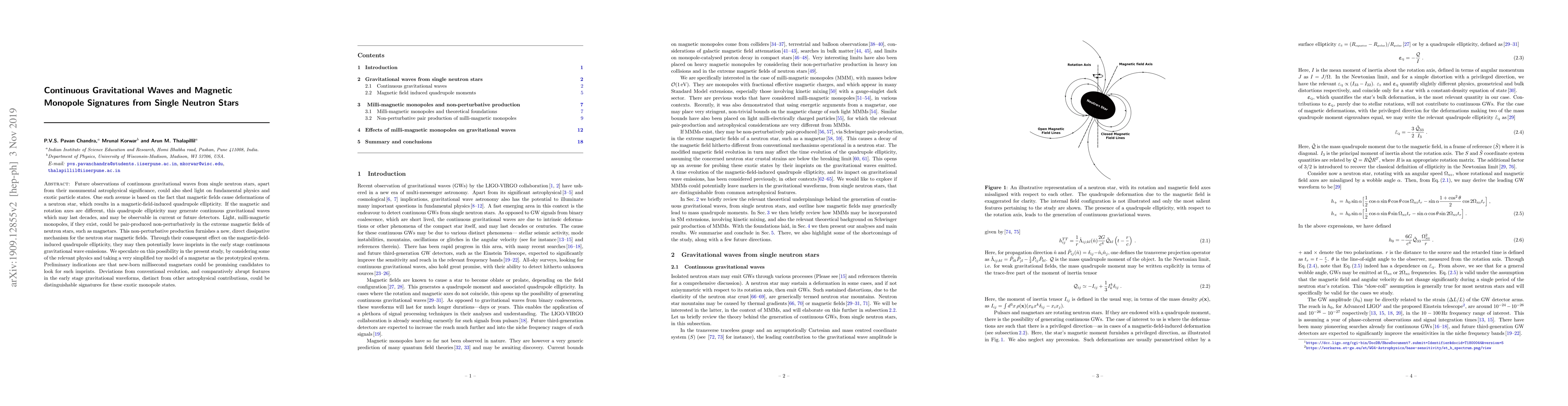 This paper explores how continuous gravitational waves from neutron stars could reveal fundamental physics and exotic particle states, particularly focusing on magnetic monopoles. It suggests that extreme magnetic fields in neutron stars, especially magnetars, could produce milli-magnetic monopoles, which may leave imprints in the early stage of gravitational wave emissions, offering a new dissipative mechanism for neutron star magnetic fields.