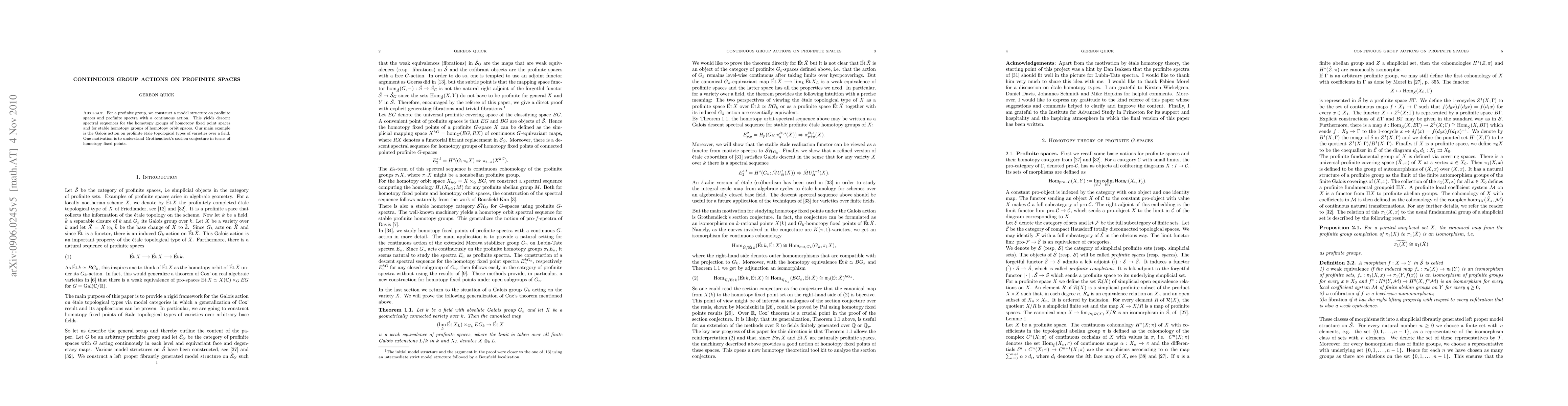 The paper constructs a model structure for profinite spaces with continuous group actions, leading to descent spectral sequences for homotopy and stable homotopy groups. The focus is on Galois actions on profinite \'etale types to aid in understanding Grothendieck's section conjecture via homotopy fixed points.