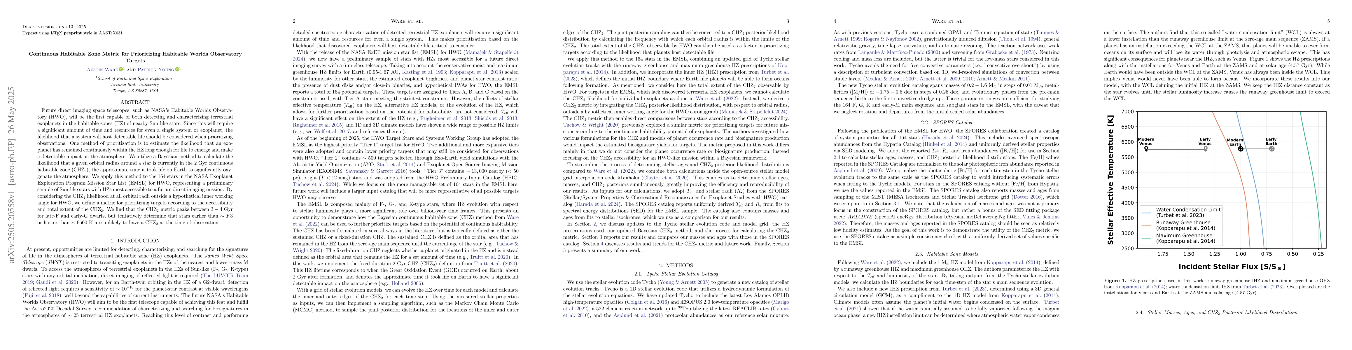 Development of a continuous habitable zone metric (CHZ$_2$) to prioritize observatory targets for detecting life-bearing exoplanets.