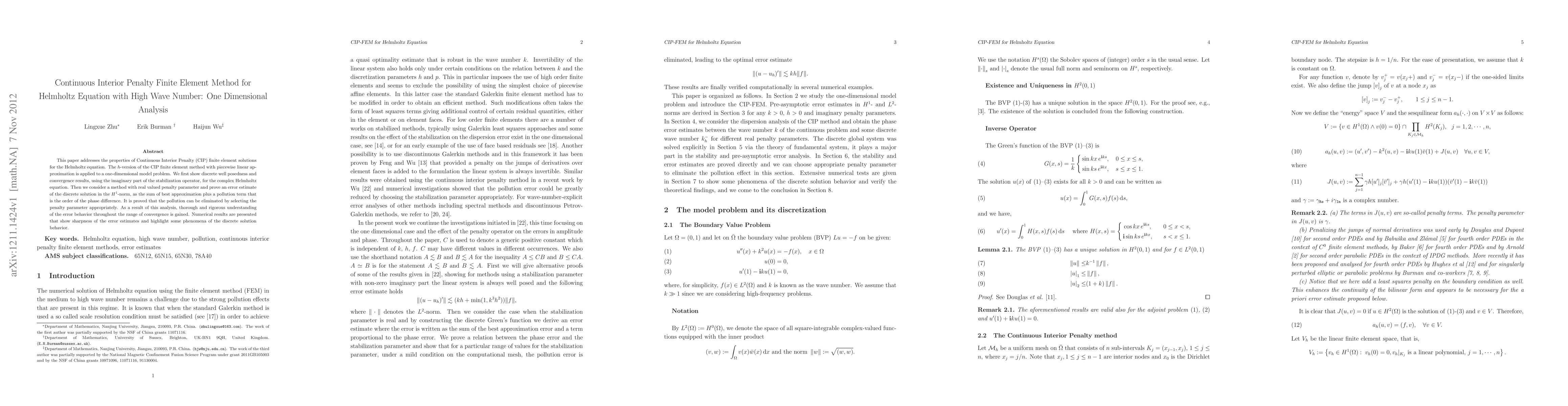 This paper analyzes the Continuous Interior Penalty (CIP) finite element method for solving the high wave number Helmholtz equation in one dimension, proving convergence and error estimates. It demonstrates that the pollution error can be mitigated by choosing the penalty parameter correctly, leading to a comprehensive understanding of the method's performance.