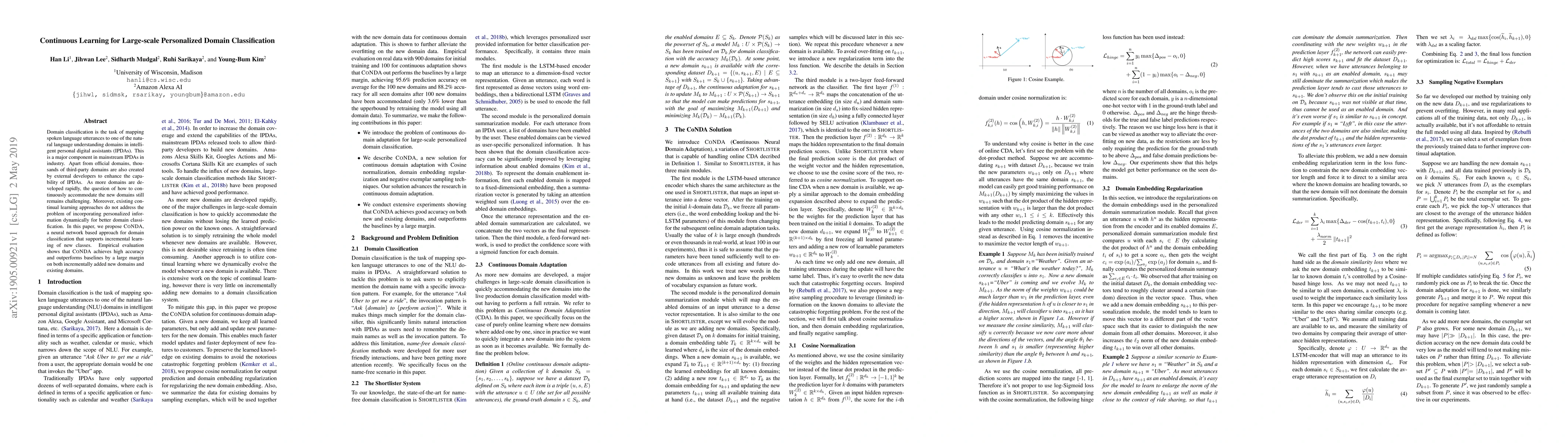 This paper proposes CoNDA, a neural network approach for continuous learning in personalized domain classification for intelligent personal digital assistants. CoNDA supports incremental learning of new domains and dynamically incorporates personalized information, achieving high accuracy and outperforming baselines.