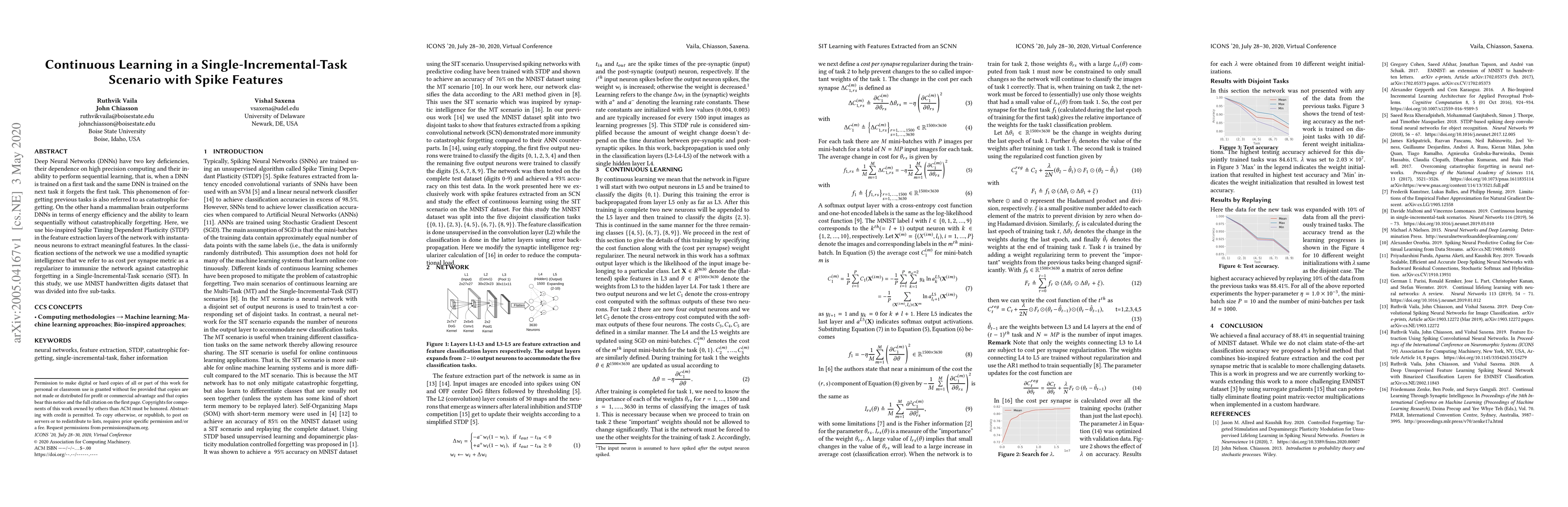 Researchers used a bio-inspired method to improve deep neural networks' ability to learn sequentially without forgetting previous tasks. They achieved this through the use of Spike Timing Dependent Plasticity in feature extraction layers.