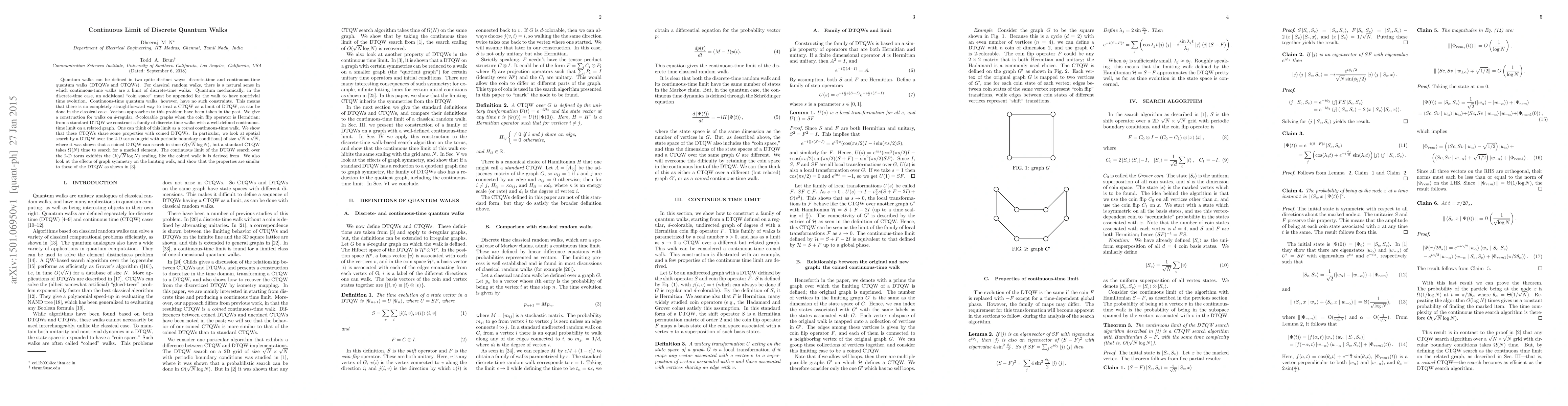 This paper constructs a continuous-time quantum walk (CTQW) as a limit of discrete-time quantum walks (DTQWs) on $d$-regular, $d$-colorable graphs, showing that the continuous limit retains properties like spatial search efficiency from the original DTQW. The study demonstrates that the continuous limit, akin to a "coined" CTQW, maintains the $O(\sqrt{N}\log{N})$ search time over a 2-D torus, unlike standard CTQWs.