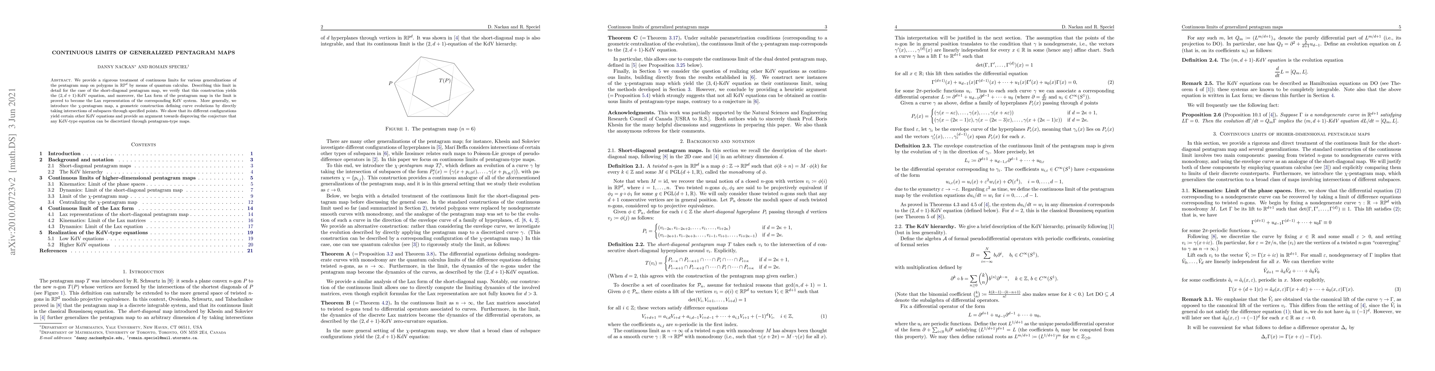 This paper rigorously explores continuous limits of generalized pentagram maps on polygons, demonstrating that these limits yield the $(2,d+1)$-KdV equation and its Lax representation. The study introduces the $\chi$-pentagram map and argues against the conjecture that all KdV-type equations can be discretized via pentagram-type maps.