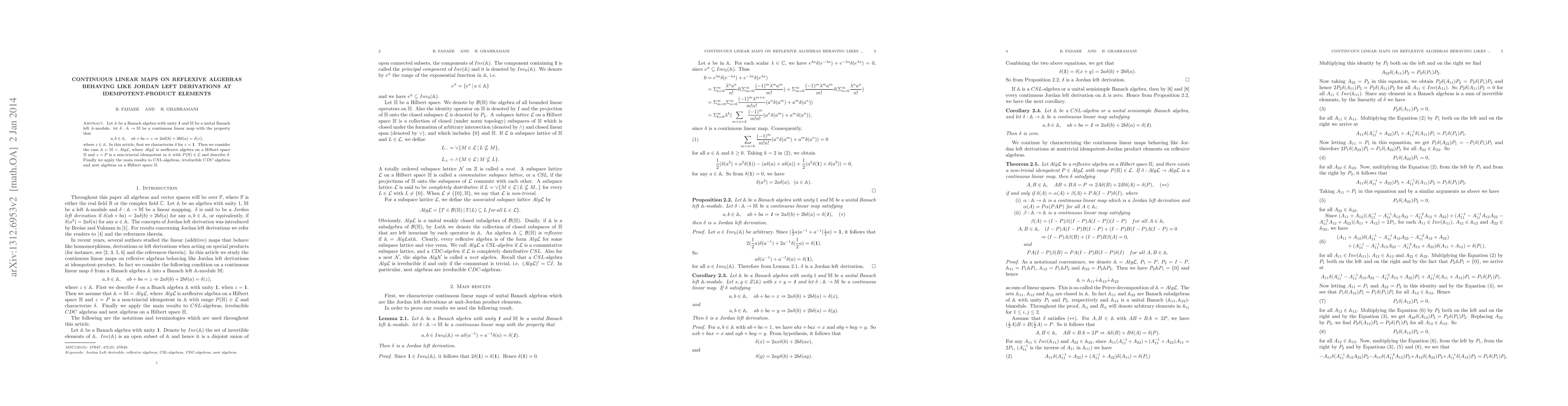 A research paper investigates continuous linear maps on reflexive algebras that behave like Jordan left derivations at idempotent-product elements, with applications to specific types of algebraic structures.