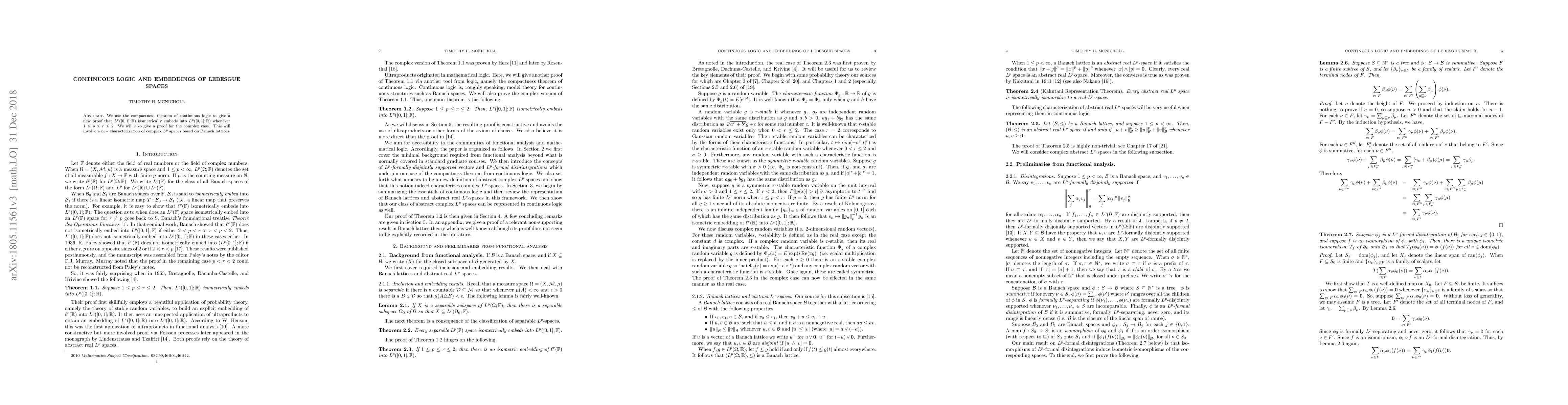 We use the compactness theorem of continuous logic to give a new proof that $L^r([0,1]; \mathbb{R})$ isometrically embeds into $L^p([0,1]; \mathbb{R})$ whenever $1 \leq p \leq r \leq 2$. We will also give a proof for the complex case. This will involve a new characterization of complex $L^p$ spaces based on Banach lattices.