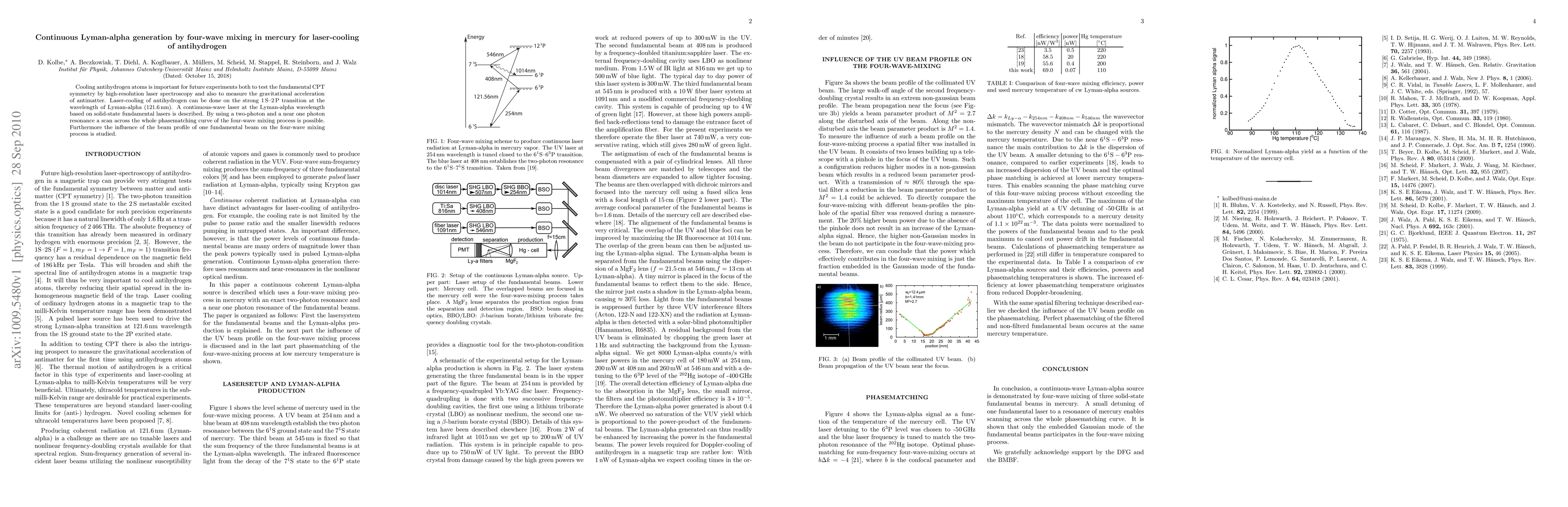 This paper describes the development of a continuous-wave laser at Lyman-alpha wavelength for cooling antihydrogen atoms, crucial for high-resolution spectroscopy and gravitational acceleration measurements. The study employs four-wave mixing in mercury, utilizing two-photon and near one-photon resonances to scan the phasematching curve and investigates the impact of beam profiles on the process.