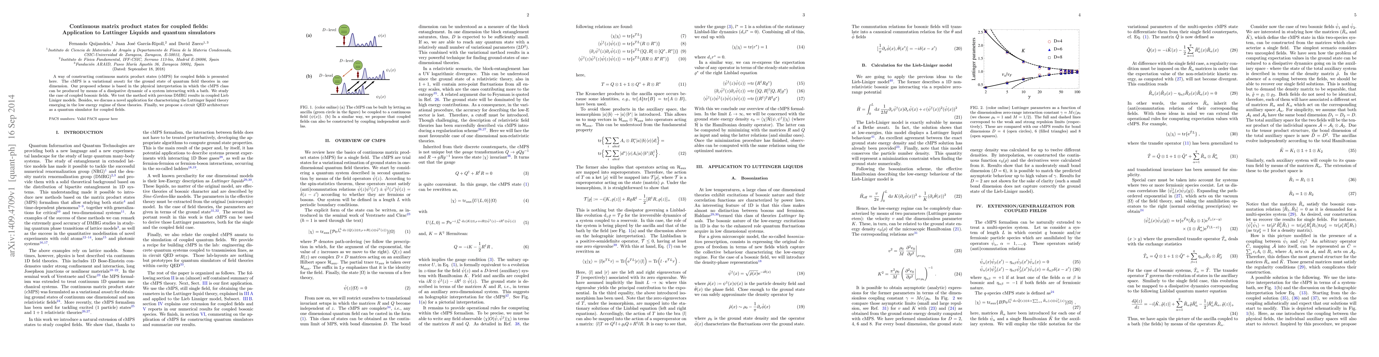 Researchers develop a method to create continuous matrix product states for coupled fields in quantum field theories, which can simulate Luttinger liquids and quantum systems.
