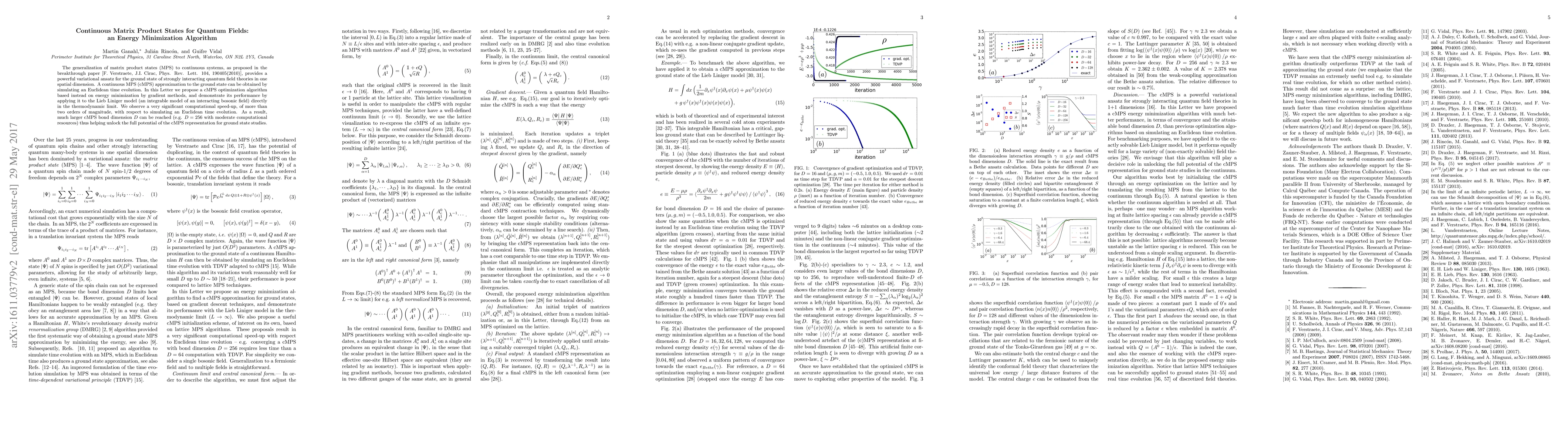 The generalization of matrix product states (MPS) to continuous systems, as proposed in the breakthrough paper [F. Verstraete, J.I. Cirac, Phys. Rev. Lett. 104, 190405(2010)], provides a powerful variational ansatz for the ground state of strongly interacting quantum field theories in one spatial dimension. A continuous MPS (cMPS) approximation to the ground state can be obtained by simulating an Euclidean time evolution. In this Letter we propose a cMPS optimization algorithm based instead on energy minimization by gradient methods, and demonstrate its performance by applying it to the Lieb Liniger model (an integrable model of an interacting bosonic field) directly in the thermodynamic limit. We observe a very significant computational speed-up, of more than two orders of magnitude, with respect to simulating an Euclidean time evolution. As a result, much larger cMPS bond dimension D can be reached (e.g. D = 256 with moderate computational resources) thus helping unlock the full potential of the cMPS representation for ground state studies.