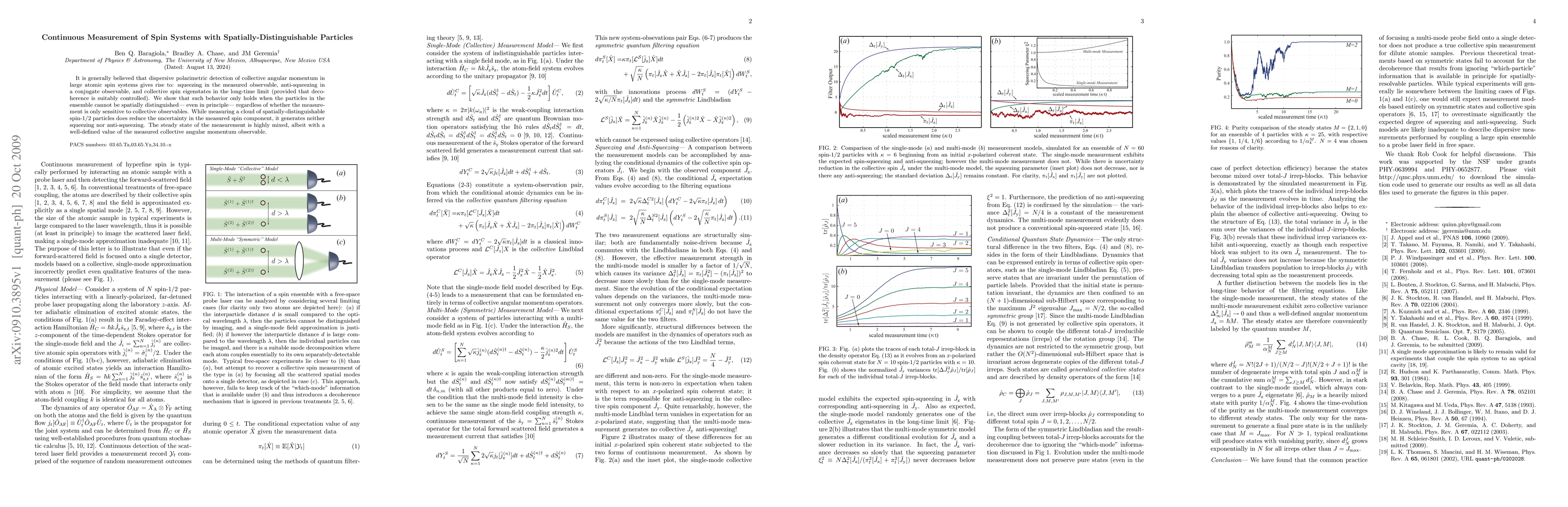 It is generally believed that dispersive polarimetric detection of collective angular momentum in large atomic spin systems gives rise to: squeezing in the measured observable, anti-squeezing in a conjugate observable, and collective spin eigenstates in the long-time limit (provided that decoherence is suitably controlled). We show that such behavior only holds when the particles in the ensemble cannot be spatially distinguished-- even in principle-- regardless of whether the measurement is only sensitive to collective observables. While measuring a cloud of spatially-distinguishable spin-1/2 particles does reduce the uncertainty in the measured spin component, it generates neither squeezing nor anti-squeezing. The steady state of the measurement is highly mixed, albeit with a well-defined value of the measured collective angular momentum observable.