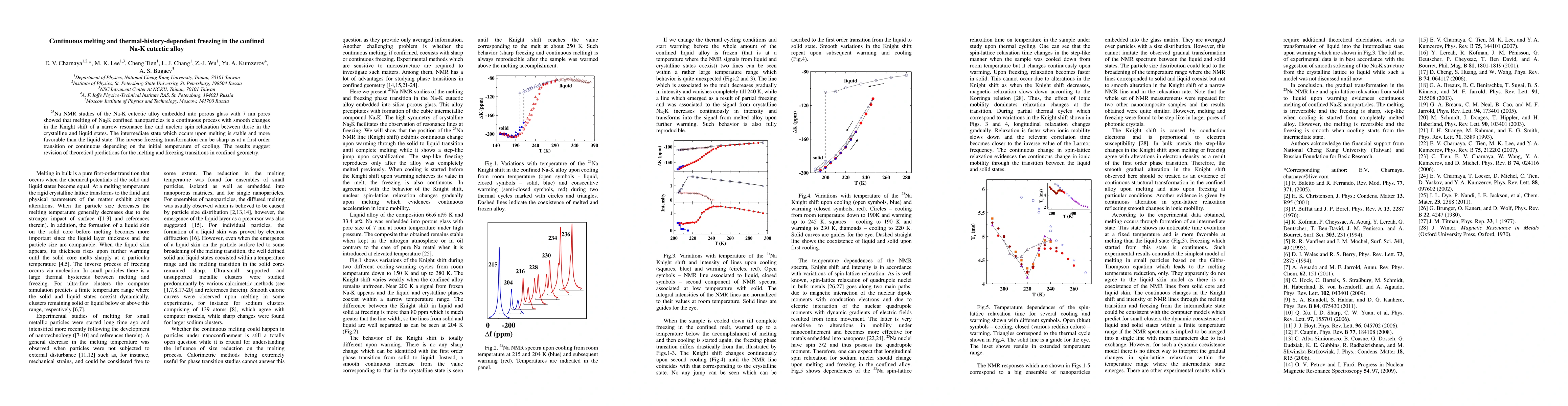 This study reveals that melting in confined Na-K eutectic alloy nanoparticles is a continuous process, with an intermediate stable state. The freezing transformation can be either sharp or continuous, depending on the cooling temperature, challenging existing theoretical models for melting and freezing in confined systems.