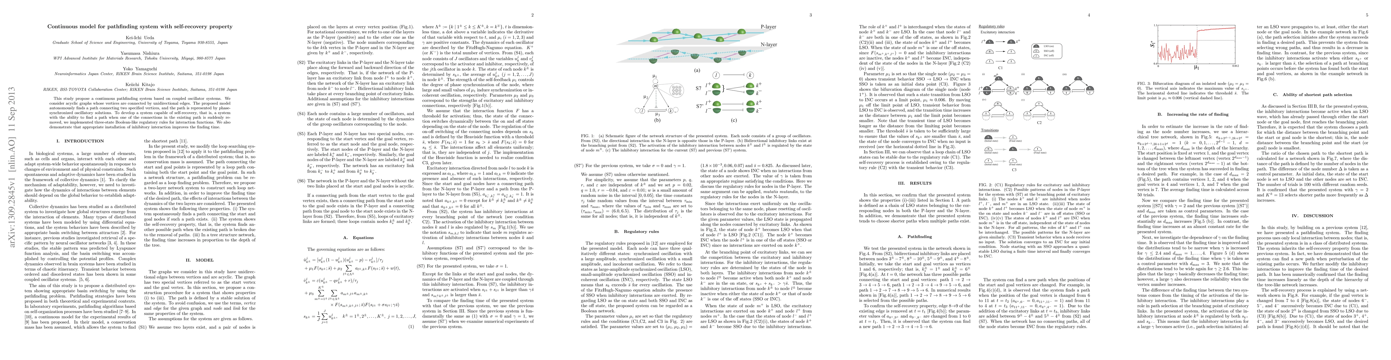 This study propose a continuous pathfinding system based on coupled oscillator systems. We consider acyclic graphs whose vertices are connected by unidirectional edges. The proposed model autonomously finds a path connecting two specified vertices, and the path is represented by phase-synchronized oscillatory solutions. To develop a system capable of self-recovery, that is, a system with the ability to find a path when one of the connections in the existing path is suddenly removed, we implemented three-state Boolean-like regulatory rules for interaction functions. We also demonstrate that appropriate installation of inhibitory interaction improves the finding time.