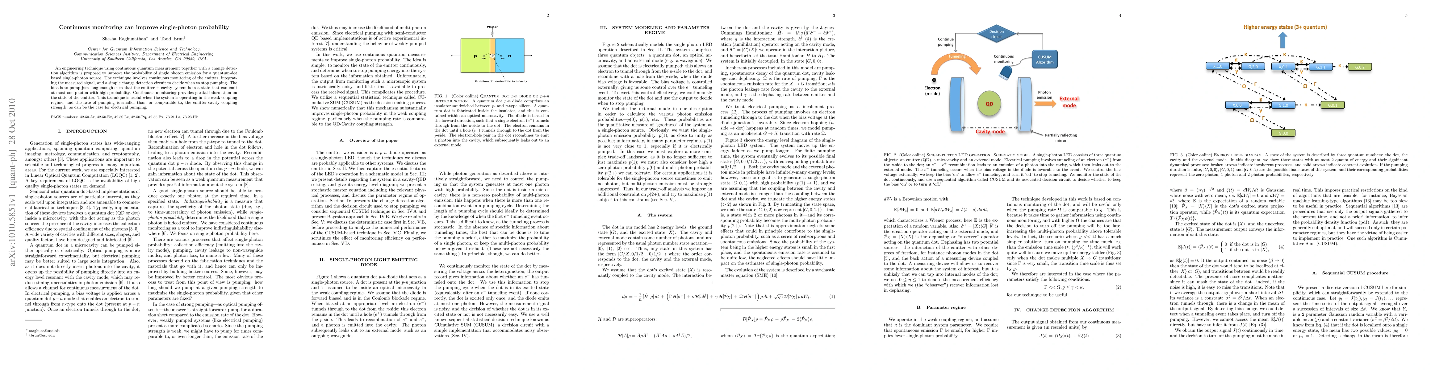 This paper proposes an engineering technique that uses continuous quantum measurement and a change detection algorithm to enhance the probability of single-photon emission from a quantum-dot based source. By continuously monitoring the emitter and employing a change detection circuit, the system can be pumped just long enough to achieve a state with high single-photon emission probability.
