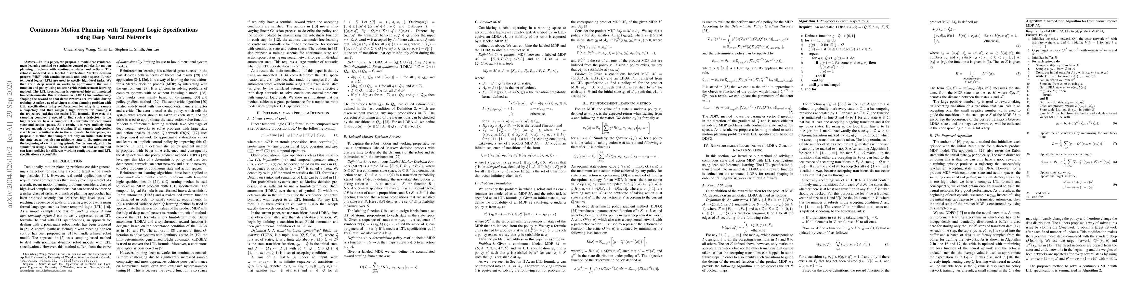 Researchers propose a new method for continuous motion planning using deep neural networks to learn control policies that meet specific temporal logic specifications.