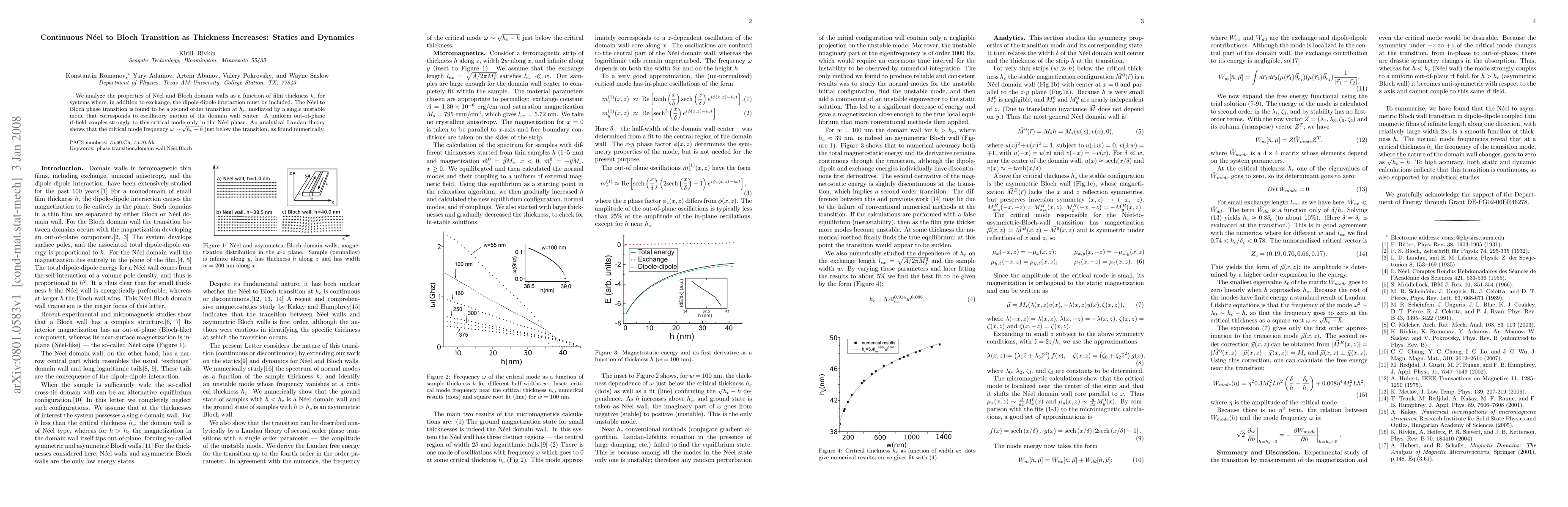 We analyze the properties of Neel and Bloch domain walls as a function of film thickness h, for systems where, in addition to exchange, the dipole-dipole interaction must be included. The Neel to Bloch phase transition is found to be a second order transition at hc, mediated by a single unstable mode that corresponds to oscillatory motion of the domain wall center. A uniform out-of-plane rf-field couples strongly to this critical mode only in the Neel phase. An analytical Landau theory shows that the critical mode frequency varies as the square root of (hc - h) just below the transition, as found numerically.