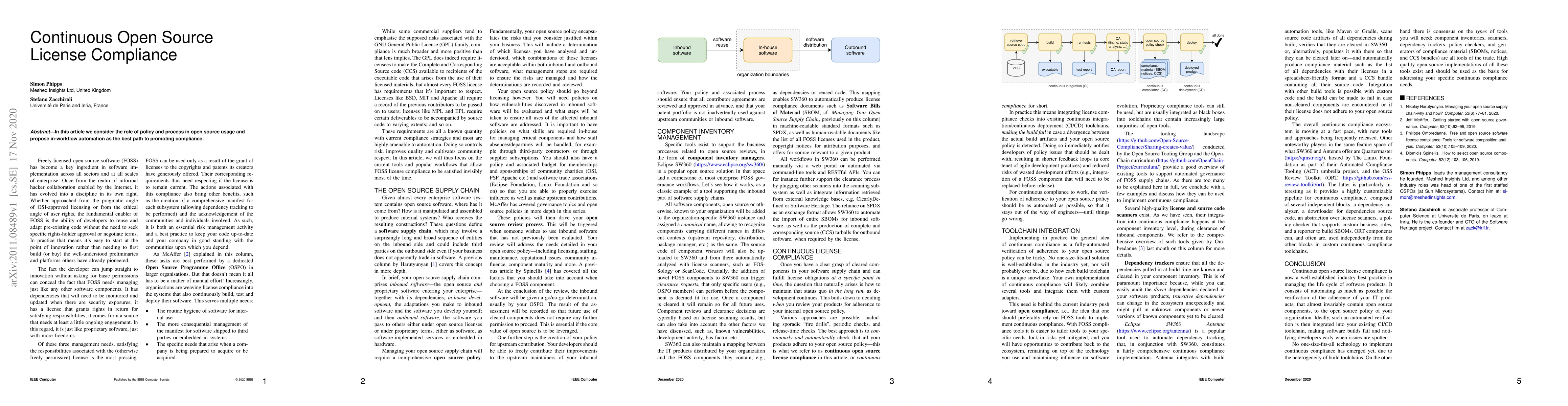 In this article we consider the role of policy and process in open source usage and propose in-workflow automation as the best path to promoting compliance.