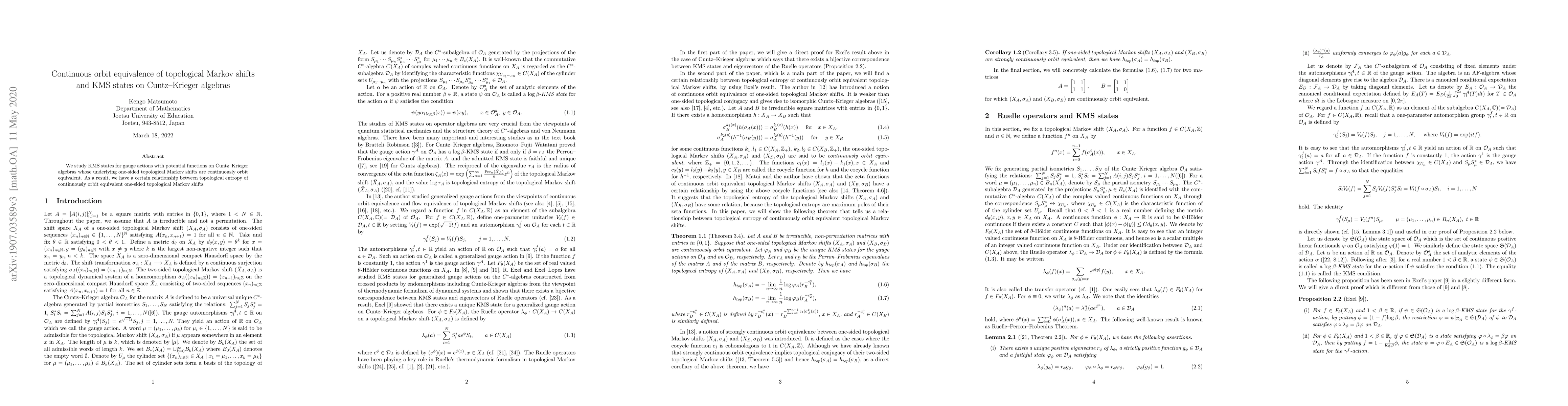 This paper investigates the relationship between KMS states for gauge actions on Cuntz-Krieger algebras and continuous orbit equivalence of their underlying one-sided topological Markov shifts, establishing a connection between their topological entropies.