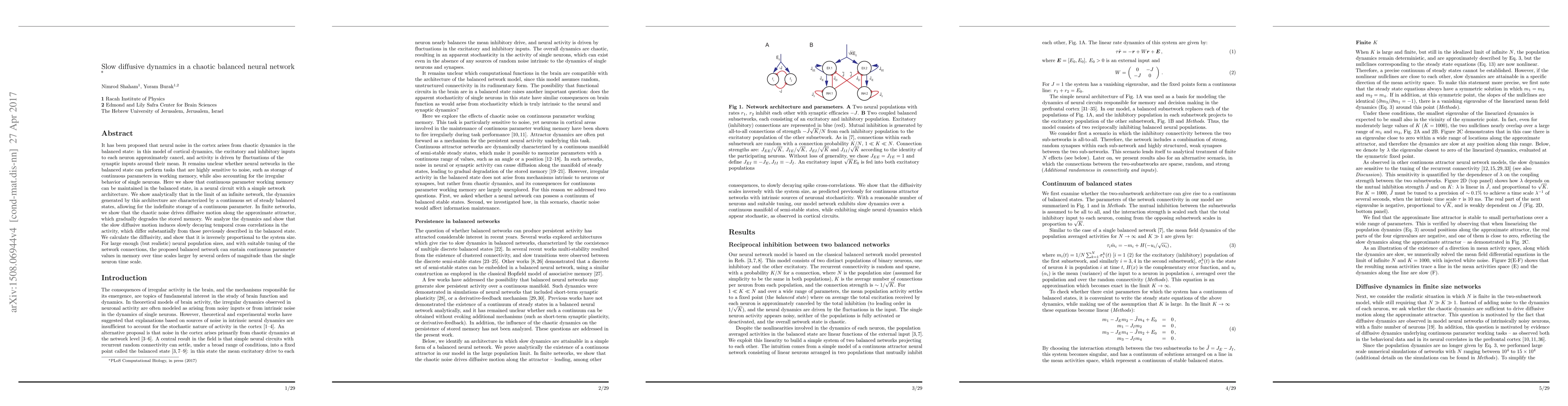 This paper demonstrates that continuous parameter working memory can be sustained in a balanced chaotic neural network, where excitatory and inhibitory inputs nearly cancel. The study shows analytically that such networks can indefinitely store continuous parameters, with chaotic noise causing gradual memory degradation in finite networks.