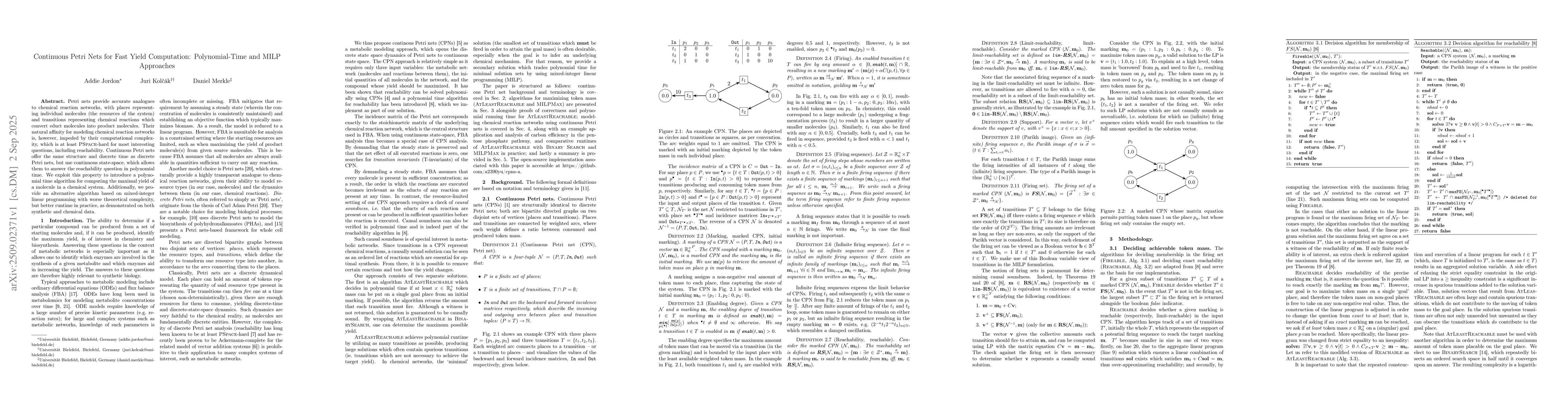 Petri nets provide accurate analogues to chemical reaction networks, with places representing individual molecules (the resources of the system) and transitions representing chemical reactions which convert educt molecules into product molecules. Their natural affinity for modeling chemical reaction networks is, however, impeded by their computational complexity, which is at least PSpace-hard for most interesting questions, including reachability. Continuous Petri nets offer the same structure and discrete time as discrete Petri nets, but use continuous state-space, which allows them to answer the reachability question in polynomial time. We exploit this property to introduce a polynomial time algorithm for computing the maximal yield of a molecule in a chemical system. Additionally, we provide an alternative algorithm based on mixed-integer linear programming with worse theoretical complexity, but better runtime in practice, as demonstrated on both synthetic and chemical data.