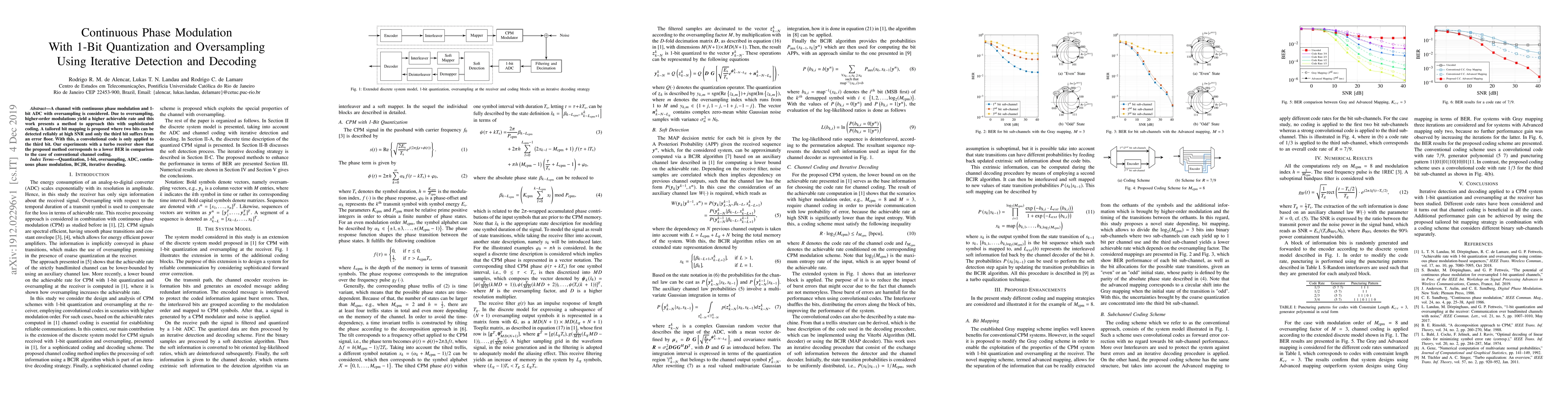 This paper proposes a method to enhance continuous phase modulation using 1-bit quantization and oversampling, employing iterative detection and tailored convolutional coding. Experiments demonstrate a lower bit error rate compared to conventional channel coding.