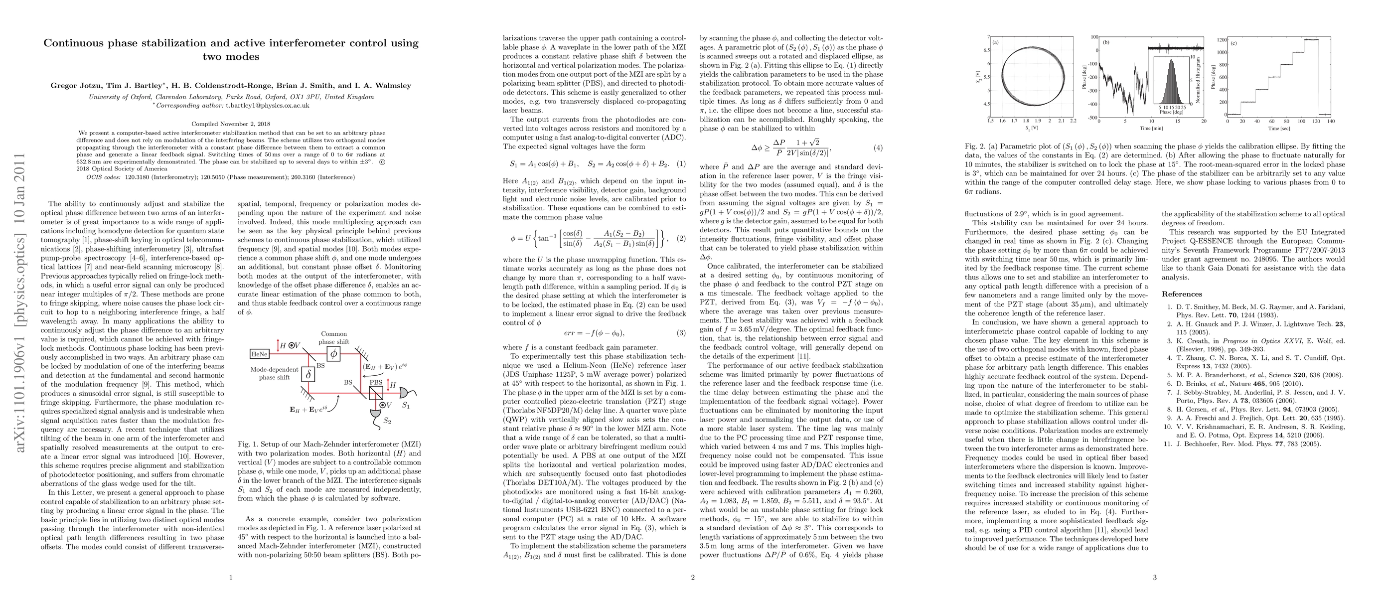 We present a computer-based active interferometer stabilization method that can be set to an arbitrary phase difference and does not rely on modulation of the interfering beams. The scheme utilizes two orthogonal modes propagating through the interferometer with a constant phase difference between them to extract a common phase and generate a linear feedback signal. Switching times of 50ms over a range of 0 to 6 pi radians at 632.8nm are experimentally demonstrated. The phase can be stabilized up to several days to within 3 degrees.