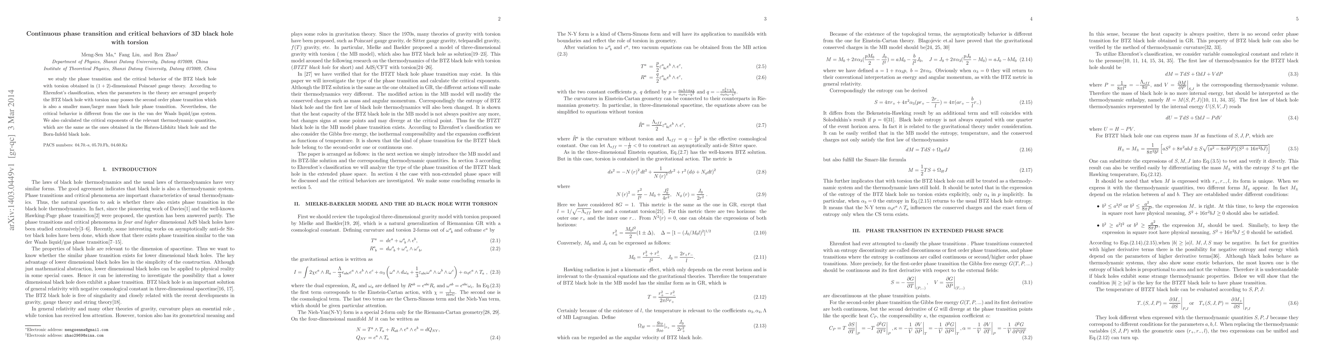 This paper examines the phase transition and critical behaviors of a (1+2)-dimensional BTZ black hole with torsion in Poincaré gauge theory, finding a second-order phase transition similar to mass transitions in black holes. The critical behavior differs from van der Waals systems, with critical exponents matching those found in Horava-Lifshitz and Born-Infeld black holes.